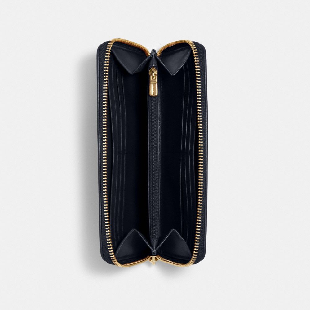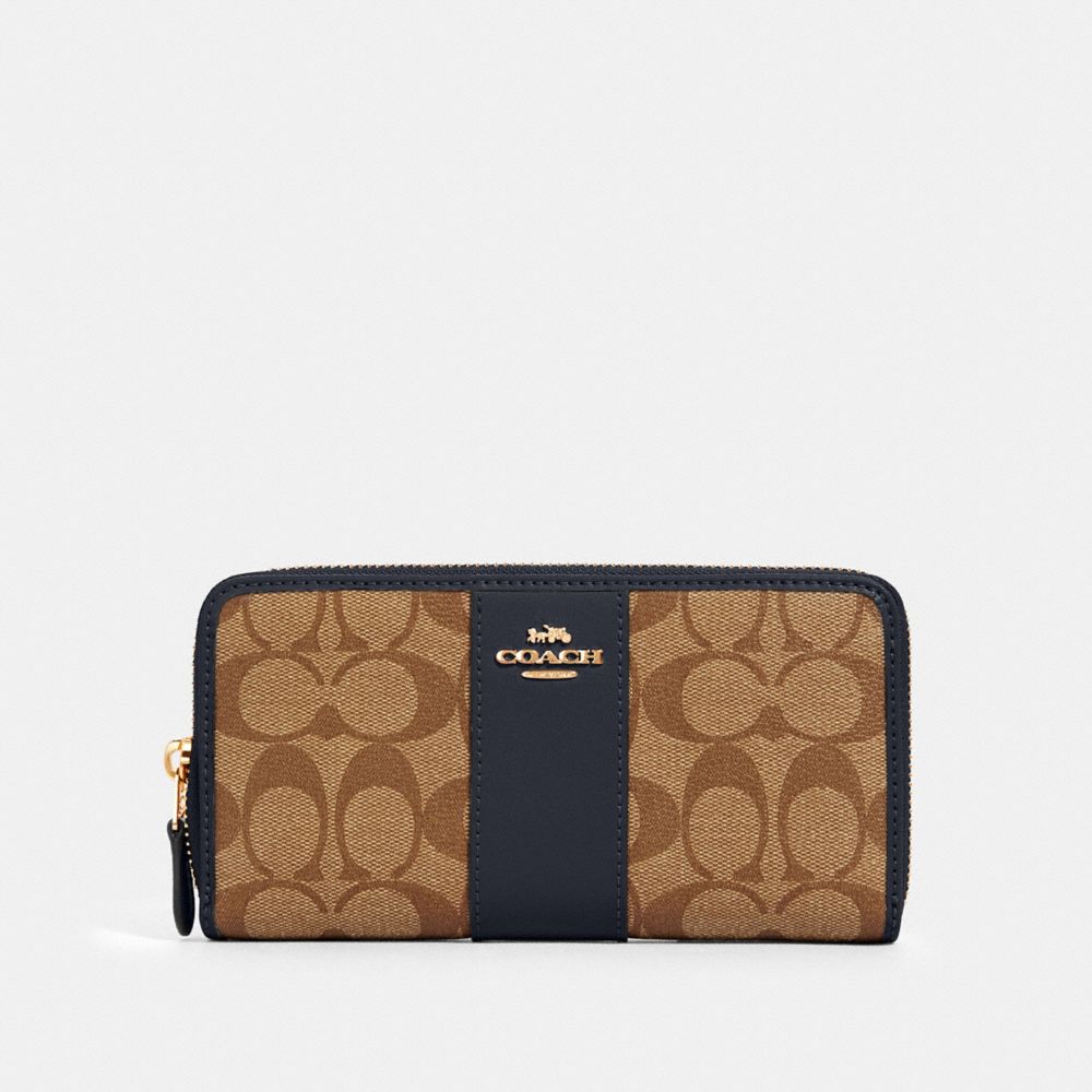 Signature coated canvas with crossgrain leather details| 12 credit card slots| Full-length bill compartments| Zip coin pocket| Zip-around closure| 7 1/2" (L) x 4" (H) x 3/4" (W)| Fits all phone sizes up to an iPhone X and Samsung S7 Edge