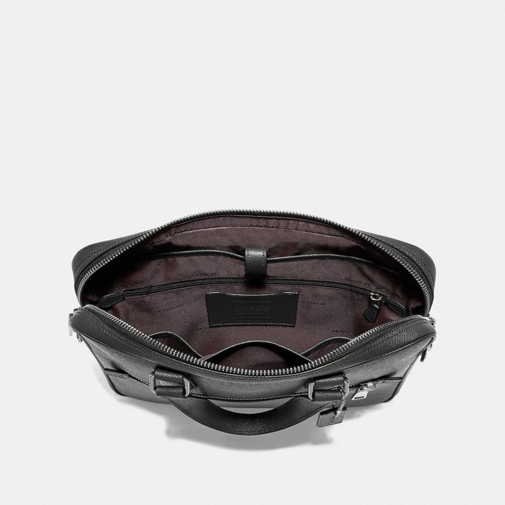 Crossgrain leather| Inside zip, cell phone and multifunction pockets| Inside sleeve with secure tab for a 13" laptop| Zip closure, fabric lining| Handles with 4 1/4" drop | Outside zip pocket| Detachable strap with 25" drop for shoulder or crossbody wear| 14 1/4" (L) x 11" (H) x 2" (W)