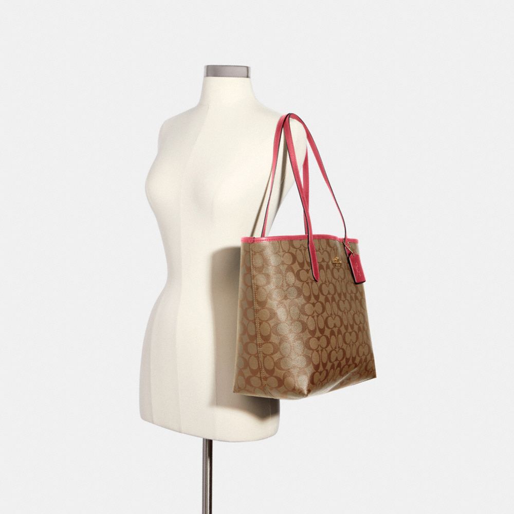 Signature coated canvas with smooth leather details| Inside zip pocket| Dogleash clip closure| Handles with 9 1/2" drop| 13" (L) x 11 1/2" (H) x 6 1/4" (W)