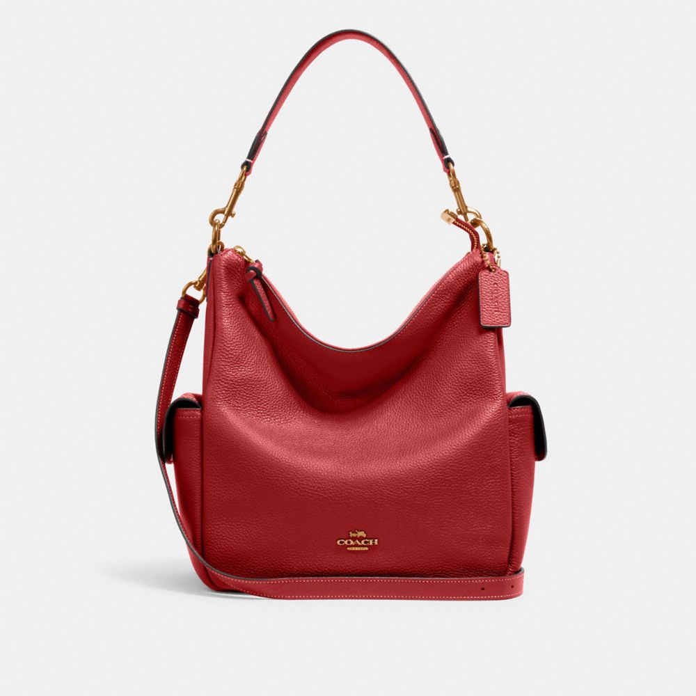 Refined pebble leather| Inside zip pocket| Zip-top closure, fabric lining| Detachable handle with 7" drop| Outside zip and snap pockets| Detachable strap with 20 3/4" drop for shoulder or crossbody wear| 10 3/4" (L) x 11 3/4" (H) x 5 1/4" (W)