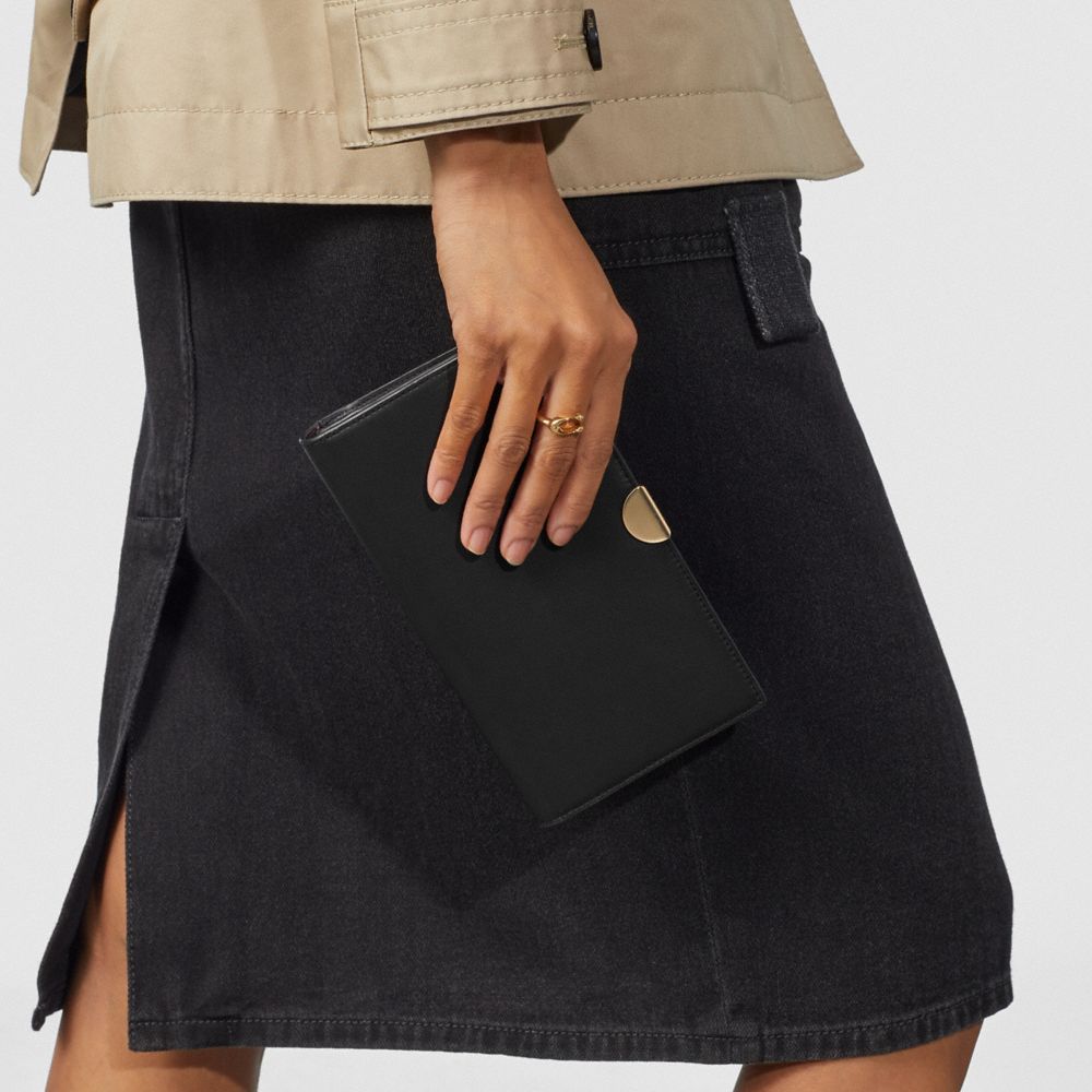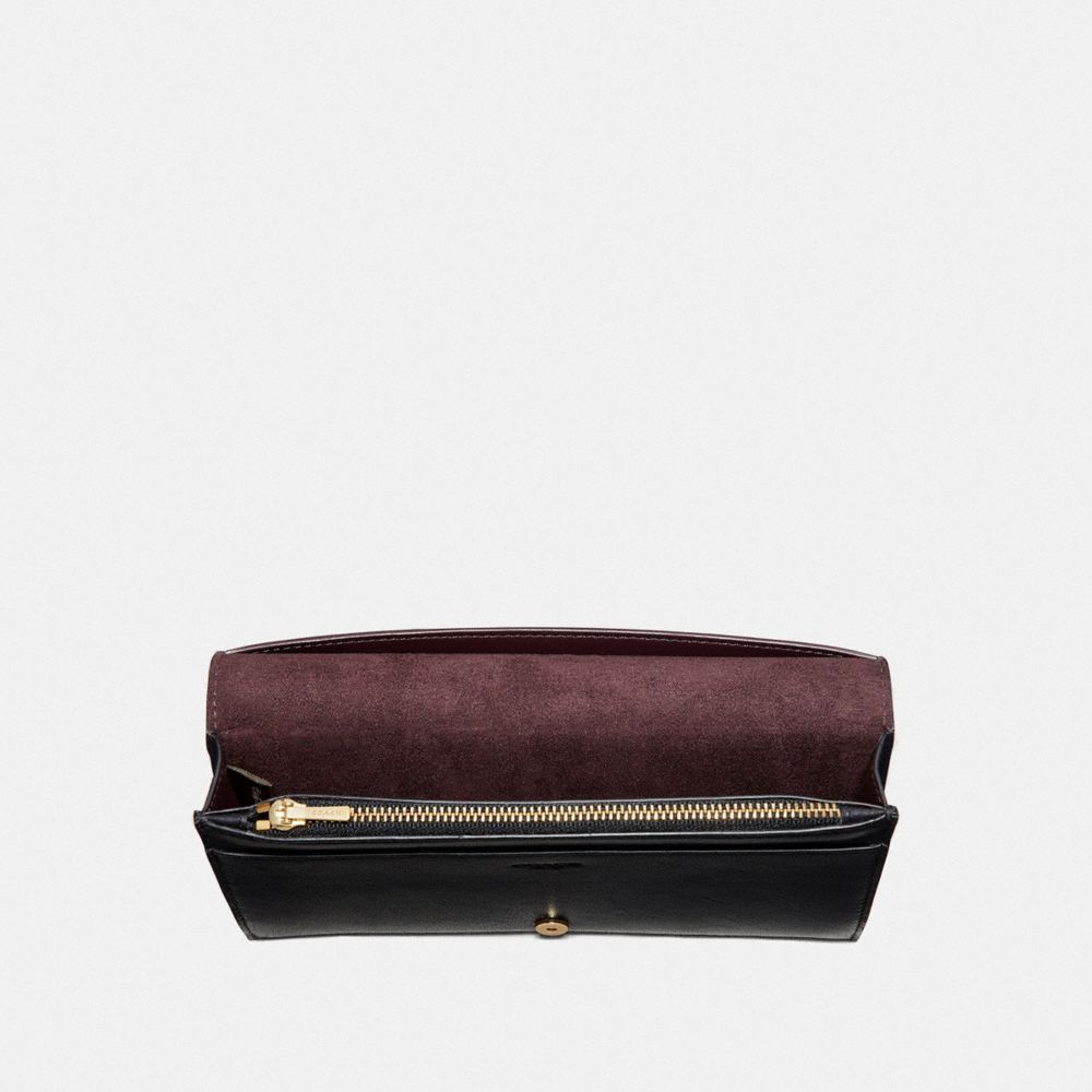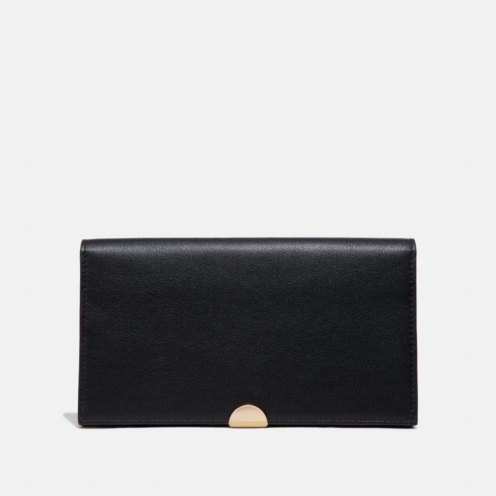 Smooth leather| Eight credit card slots| Full-length bill compartment| Inside zip and open pockets| Snap closure| Outside open pocket| 7 3/4" (L) x 4 1/4" (H)