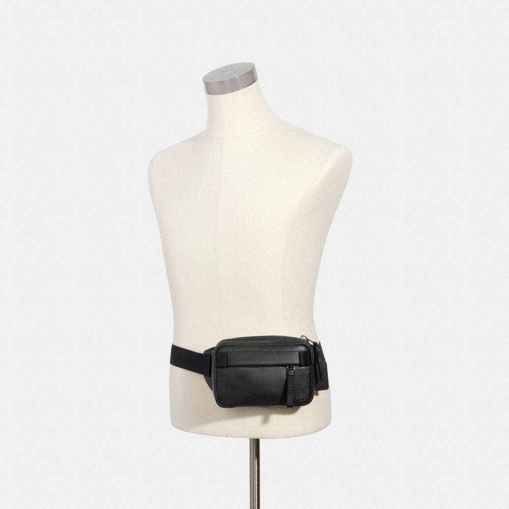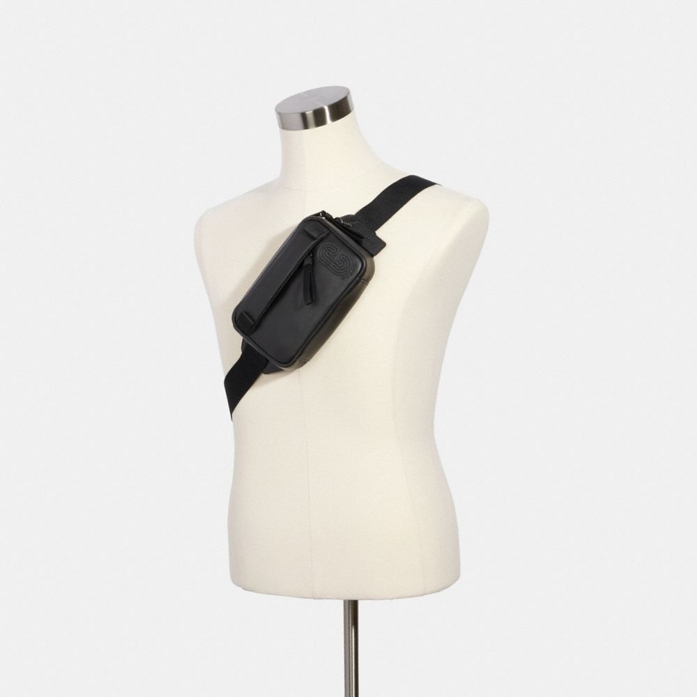 Smooth calf leather| Inside multifunction pocket| Zip-top closure, fabric lining| Outside zip pocket| Adjustable strap for wear at waist| 7" (L) x 4 1/4" (H) x 1 3/4" (W)