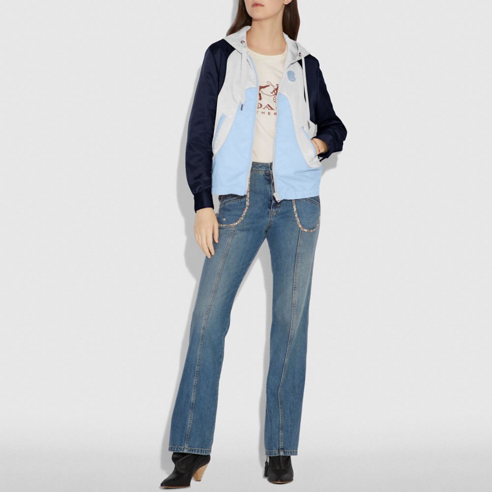 100% nylon| Leather details| Zip closure| Slip pockets| Length: 25 1/2"