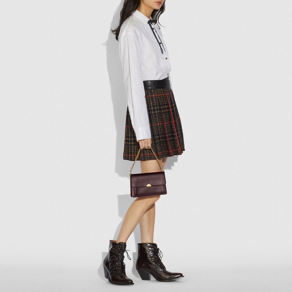 Glovetanned leather| Two credit card slots| Snap closure, leather lining| Outside open pocket| Detachable chain strap with 15 1/2" drop| Detachable long strap with 23" drop for shoulder or crossbody wear| Instantly change the look of your bag with an interchangeable strap.| 7 3/4" (L) x 5" (H) x 1 1/2" (W)