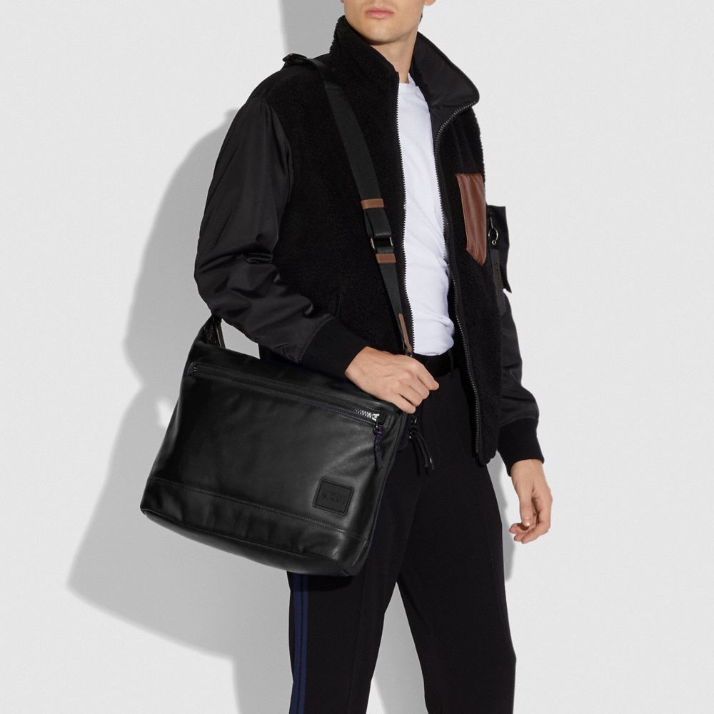 Smooth leather| Inside zip, cell phone and multifunction pockets| Zip-top closure, fabric lining| Outside zip pocket| Adjustable strap with 26 1/4" drop for shoulder or crossbody wear| Fits a 15" laptop| 16 1/2" (L) x 14 1/2" (H) x 4 3/4" (W)