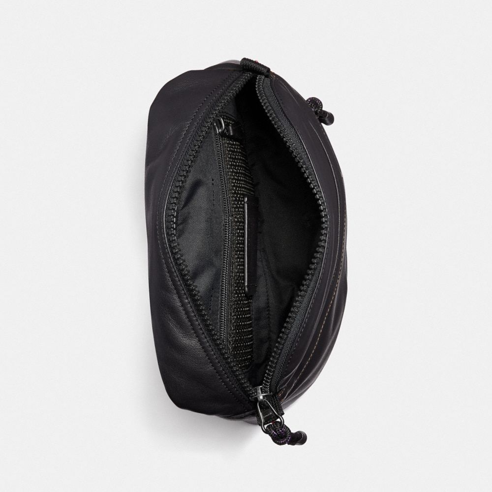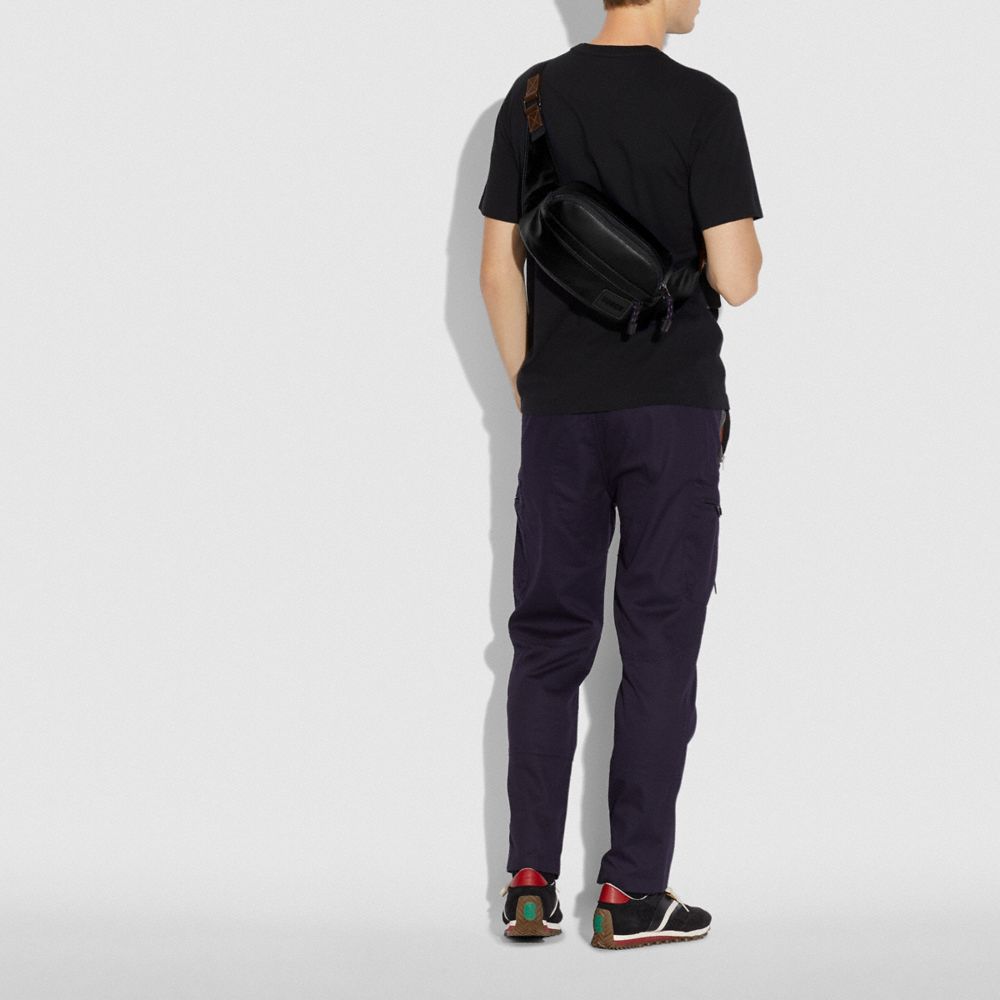 Smooth leather| Inside zip and multifunction pockets| Zip closure, fabric lining| Outside zip pocket| Adjustable strap for wear at waist| 11 1/2" (L) x 7 1/2" (H) x 3 1/4" (W)