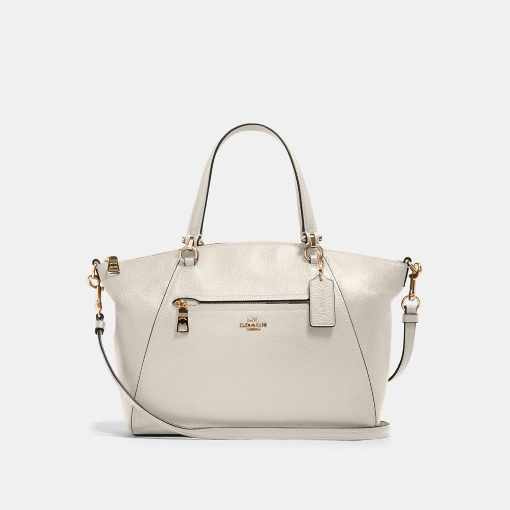 Refined pebble leather| Inside zip pocket| Zip-top closure, fabric lining| Handles with 5" drop| Outside zip pocket| Detachable strap with 21" drop for shoulder or crossbody wear| 10 1/2" (L) x 8 3/4" (H) x 3 3/4" (W)