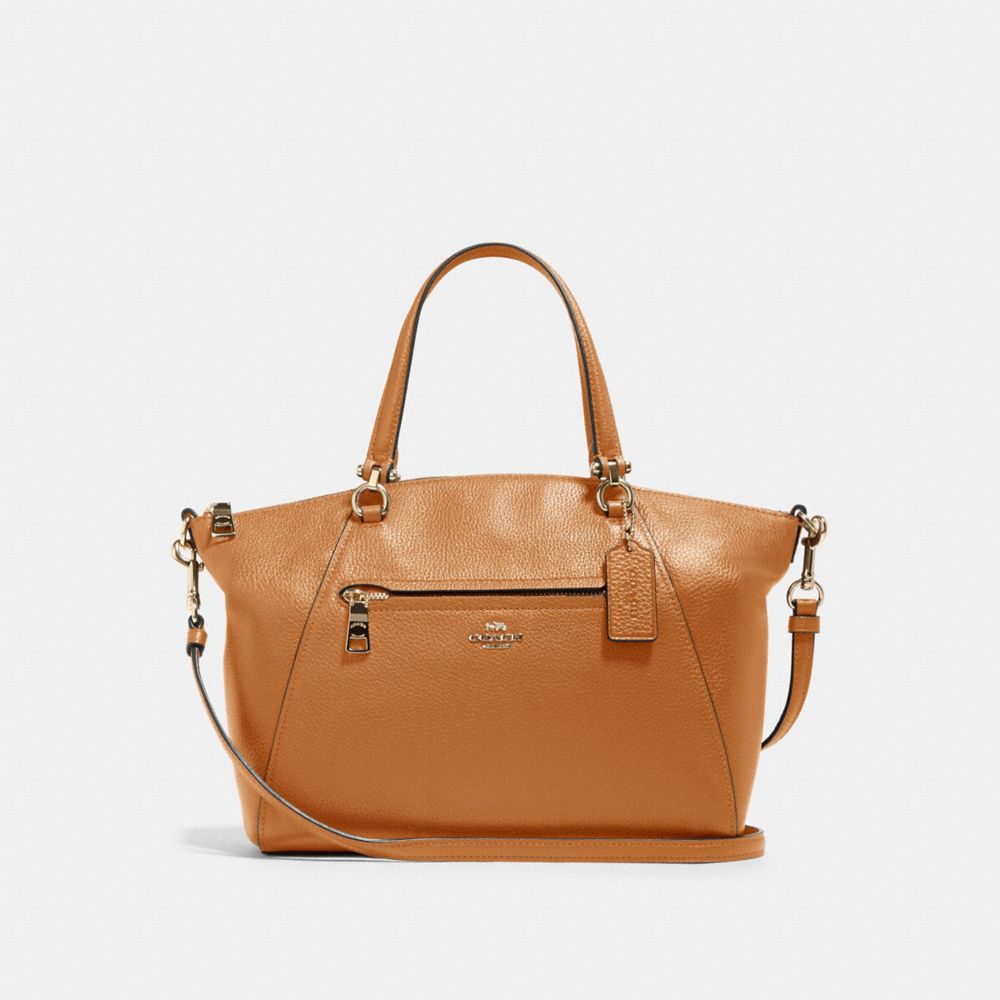 Refined pebble leather| Inside zip pocket| Zip-top closure, fabric lining| Handles with 5" drop| Outside zip pocket| Detachable strap with 21" drop for shoulder or crossbody wear| 10 1/2" (L) x 8 3/4" (H) x 3 3/4" (W)