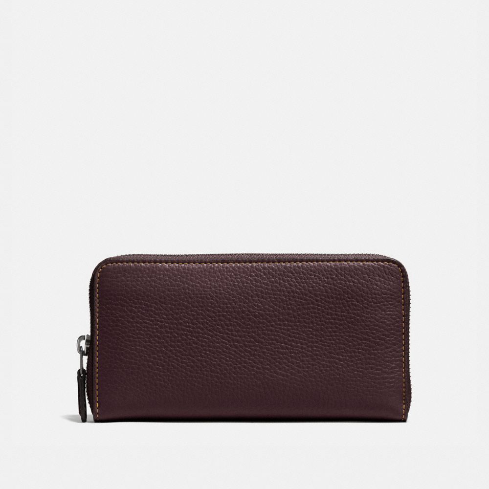 Glovetanned pebble leather| 12 credit card slots| Full-length bill compartments| Zip coin pocket| Zip-around closure| 7 1/2" (L) x 4" (H) x 3/4" (W)| Fits all phone sizes up to an iPhone X and Samsung S7 Edge
