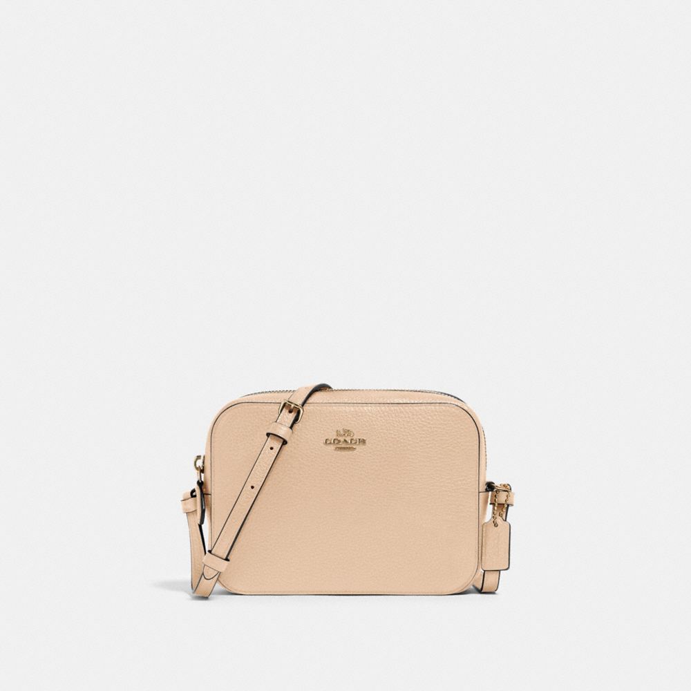 Refined pebble leather| Two credit card slots| Inside multifunction pocket| Zip closure, fabric lining| Outside open pocket| Adjustable strap with 23" drop for shoulder or crossbody wear| 7 1/4" (L) x 5 1/4" (H) x 2" (H)