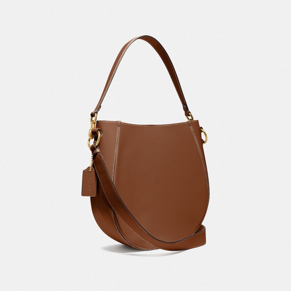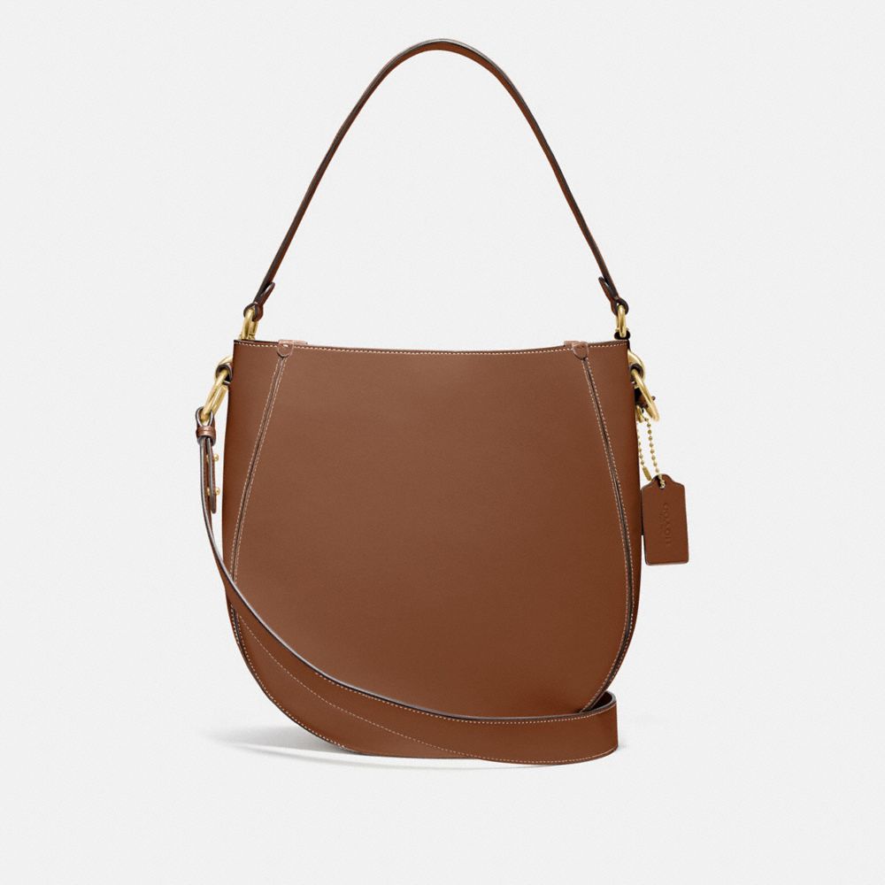 Glovetanned leather| Removable zip pouch| Magnetic snap closure, fabric lining| Detachable handle with 11" drop| Adjustable strap with 19 1/2" drop for shoulder or crossbody wear| 10 1/2" (L) x 11 1/4" (H) x 3 3/4" (W)