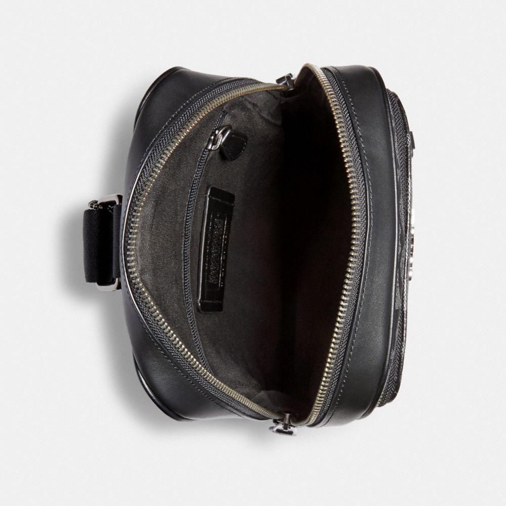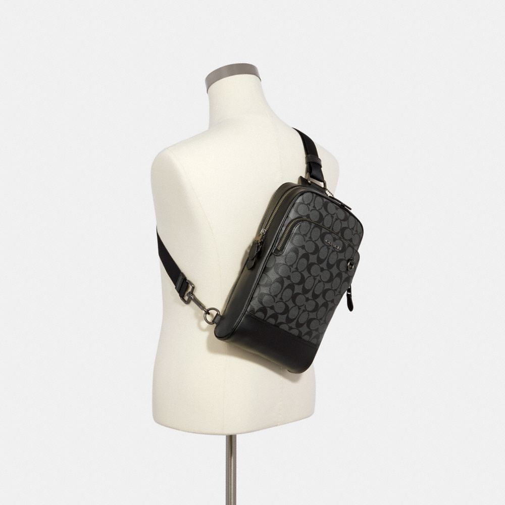 Signature coated canvas and refined calf leather| Inside zip pocket| Zip closure, fabric lining| Outside zip pocket| Adjustable strap for crossbody wear| 11 1/2" (L) x 15 3/4" (H) x 4 3/4" (W)