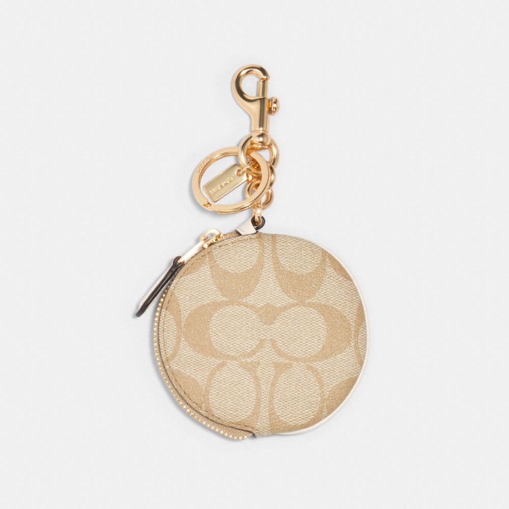 CIRCULAR COIN POUCH BAG CHARM IN SIGNATURE CANVAS
