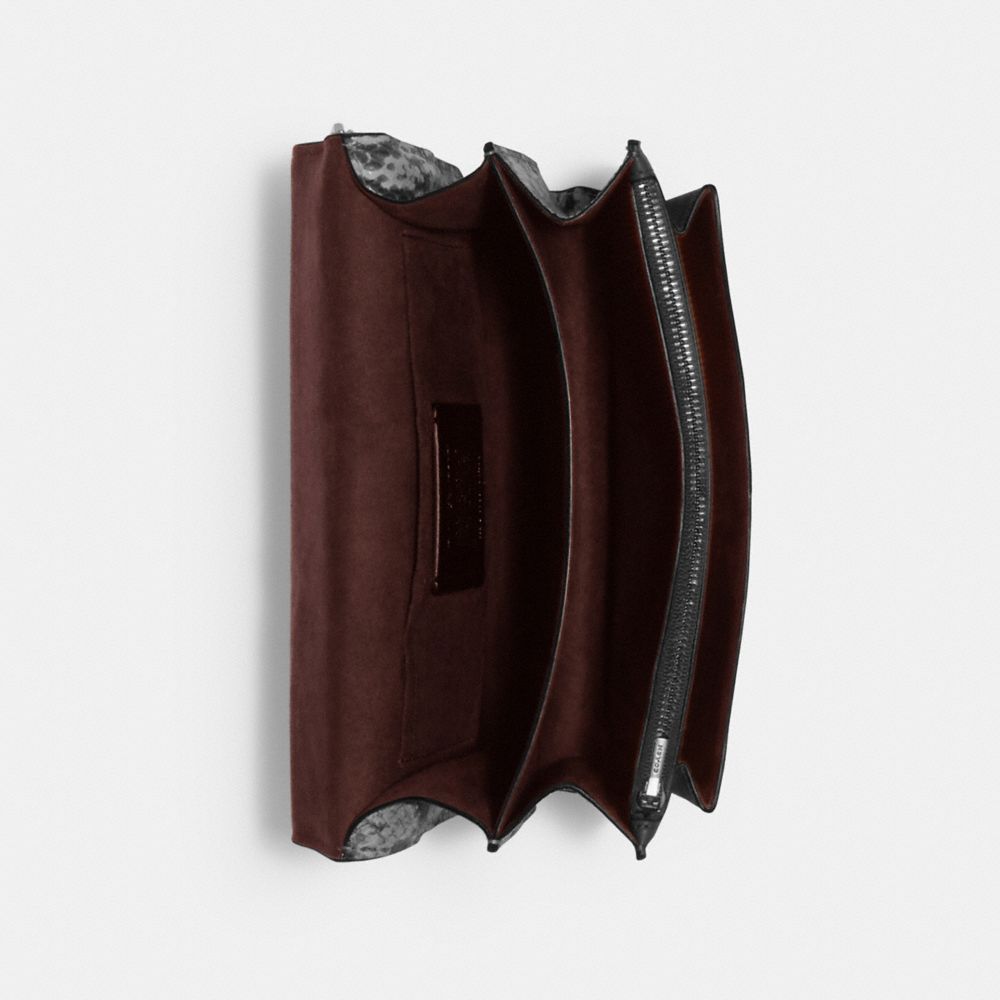 Smooth leather, Signature coated canvas and snake-embossed leather| Inside zip and multifunction pockets| Snap closure, fabric lining| Outside slip pocket| Strap with 22" drop doubles up for three ways to wear: short or long on the shoulder or crossbody style| 8 1/2" (L) x 6 1/4" (H) x 2 3/4" (W)Style No. 90400