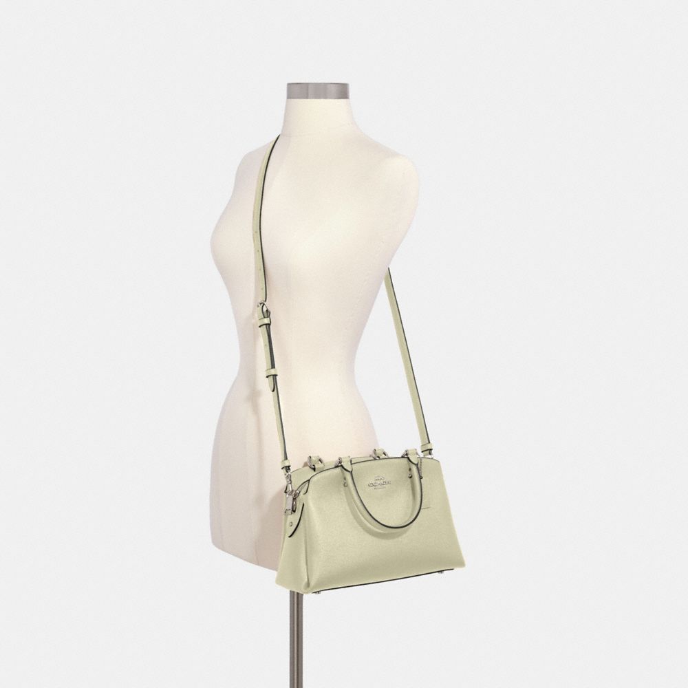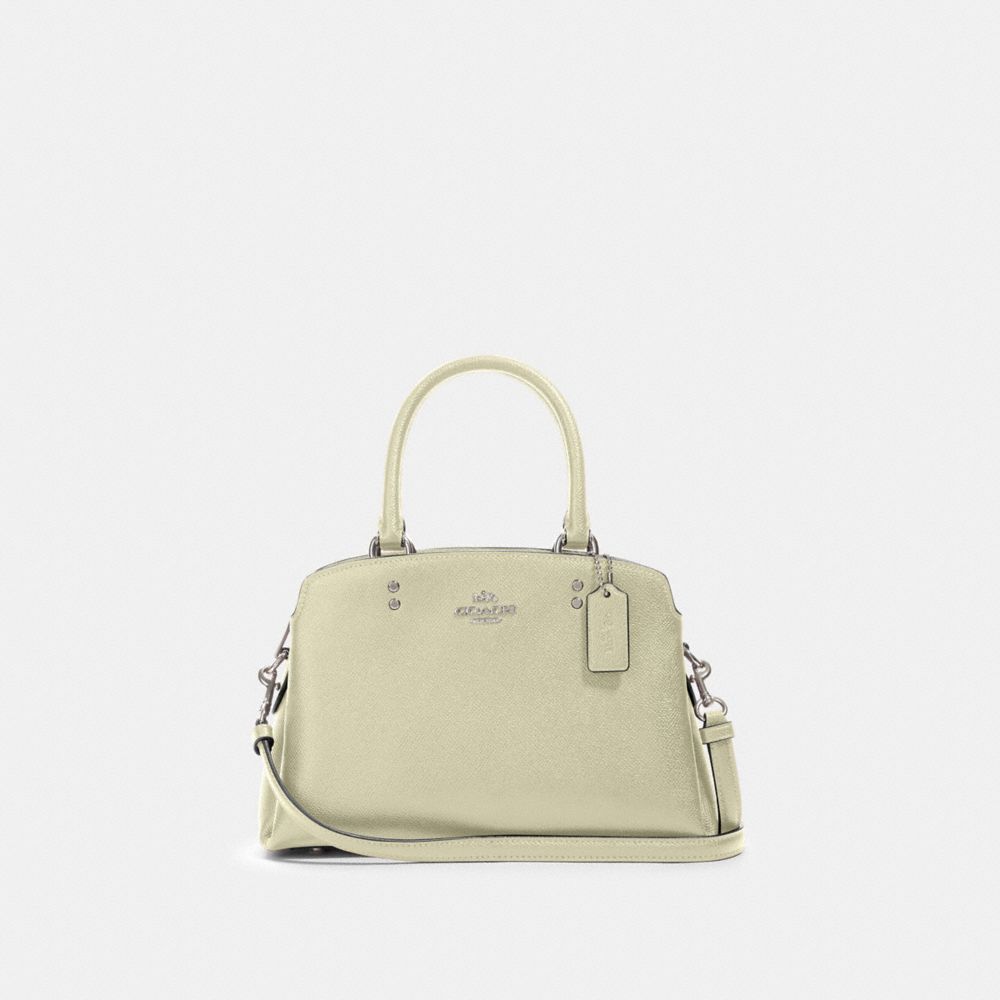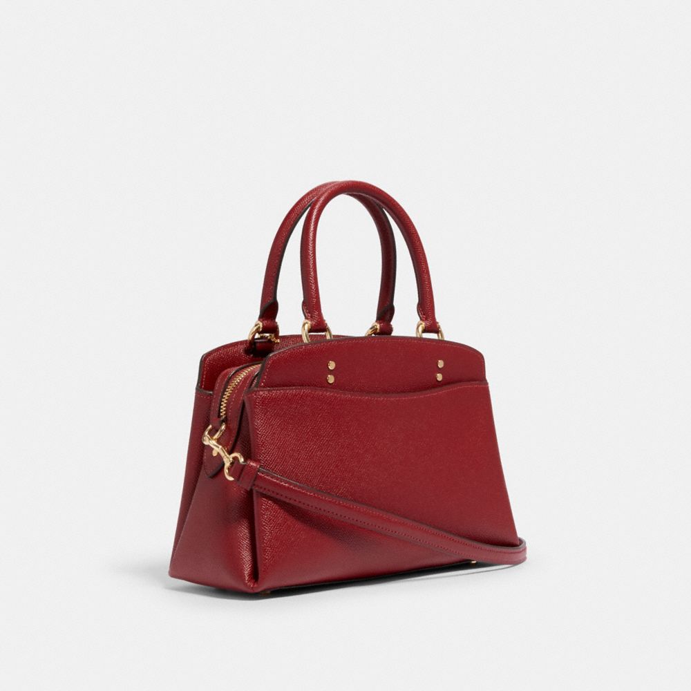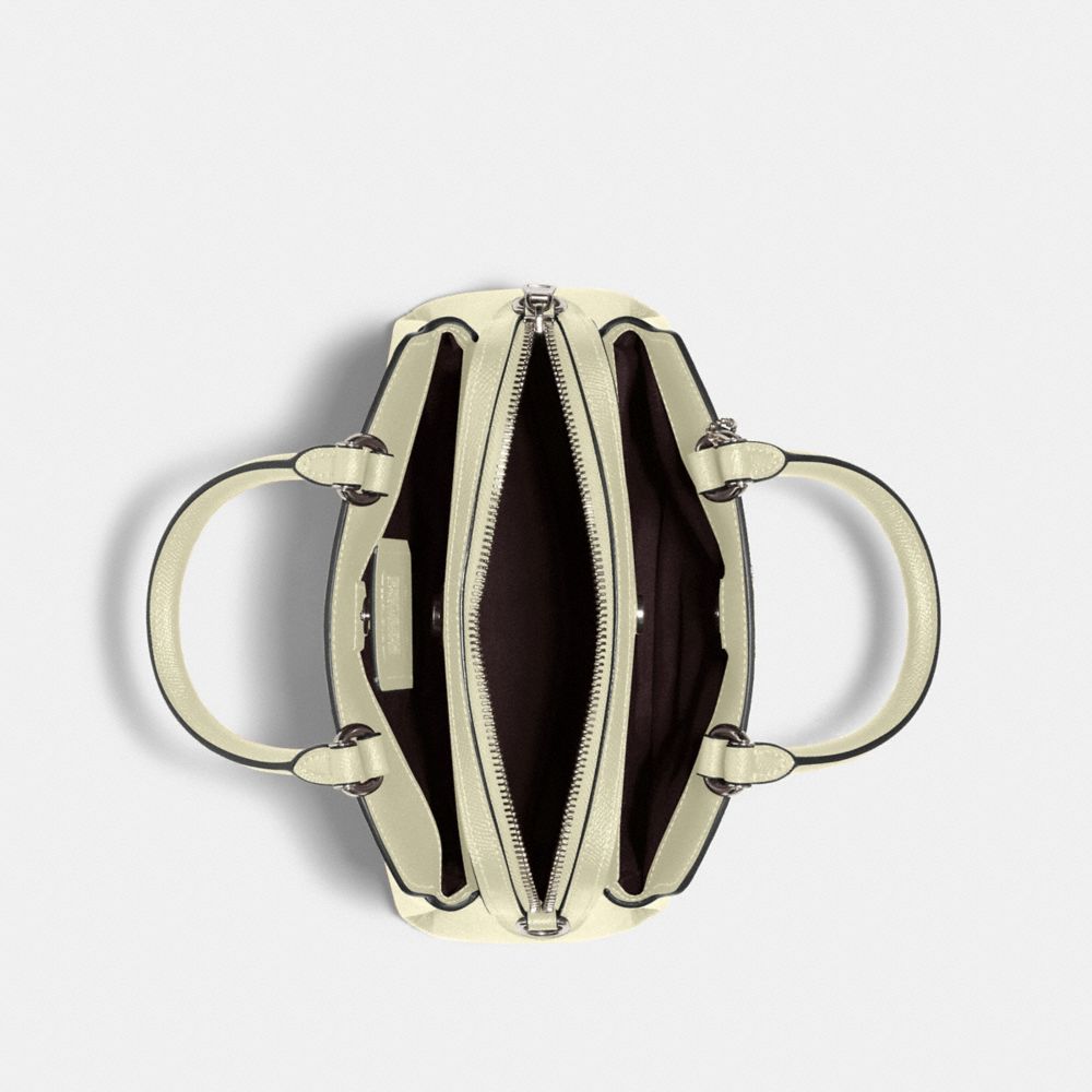 Crossgrain leather| Center zip compartment| Snap closure, fabric lining| Handles with 4 1/4" drop| Outside open pocket| Detachable strap with 21 1/2" drop for shoulder or crossbody wear| 10 1/4" (L) x 6 3/4" (H) x 4 1/4" (W)