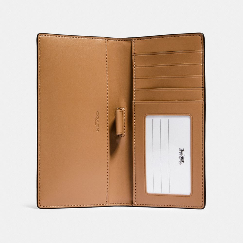 Printed coated canvas| Four credit card slots| ID window| Inside open pockets| 6 3/4" (L) x 3 1/2" (H)