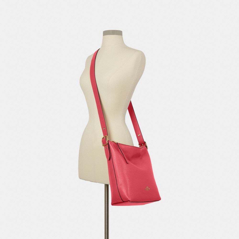 Refined pebble leather| Inside zip, cell phone and multifunction pockets| Zip-top closure, fabric lining| Outside zip pocket| Adjustable strap with 21" drop for shoulder or crossbody wear| 9" (L) x 11 1/4" (H) x 1/2" (W)