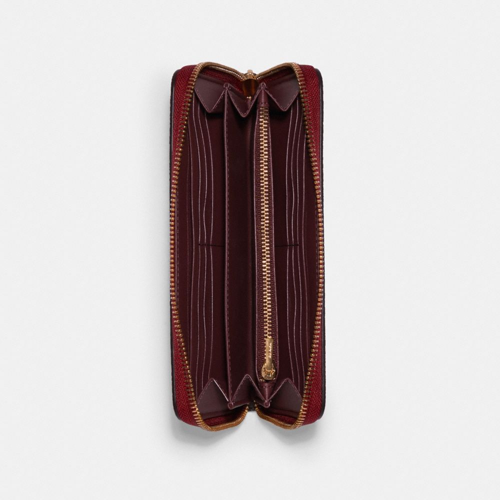 Signature coated canvas and smooth leather| Twelve credit card slots| Full-length bill compartments| Inside zip coin pocket| Zip-around closure| Detachable wrist strap| 7 1/2" (L) x 4" (H) x 1" (W)