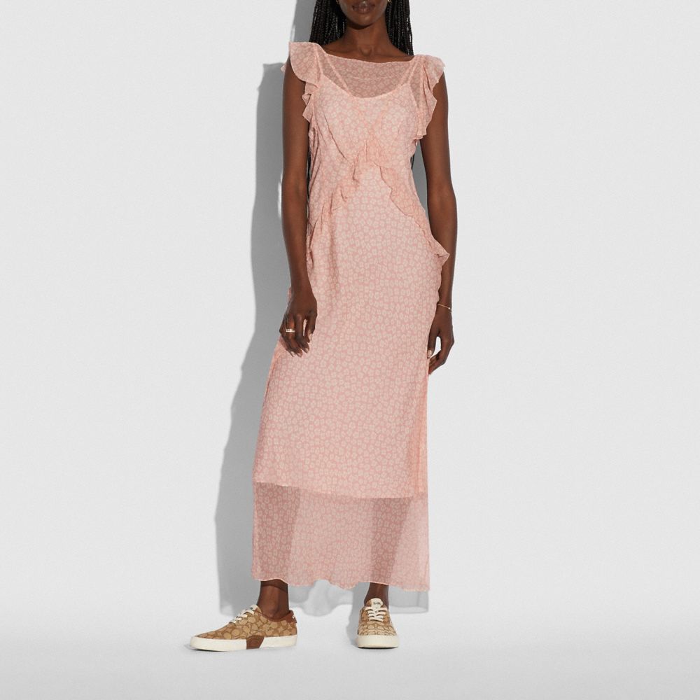 100% silk| Slip: 100% polyester| Zip closure| Length: 50"| Dry clean| Model is 5'10" (178cm), chest 31" (79cm), waist 24" (61cm), hips 35" (89cm) and wears a size 2Style No. C4989