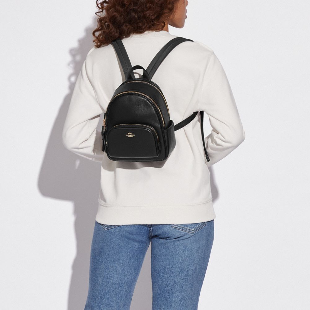 Refined pebble leather| Inside zip and multifunction pockets| Double zip closure, fabric lining| Handle with 1 1/2" drop| Outside zip and open pockets| Adjustable shoulder straps| 8" (L) x 9" (H) x 3 1/2" (W)Style No. C8603