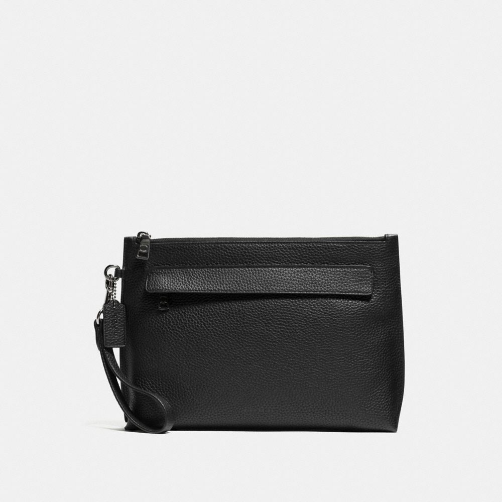 Pebble leather| Inside multifunction pockets| Zip-top closure, fabric lining| Detachable wrist strap| Outside zip pocket| 11 1/4" (L) x 8" (H) x 2 1/4" (W)