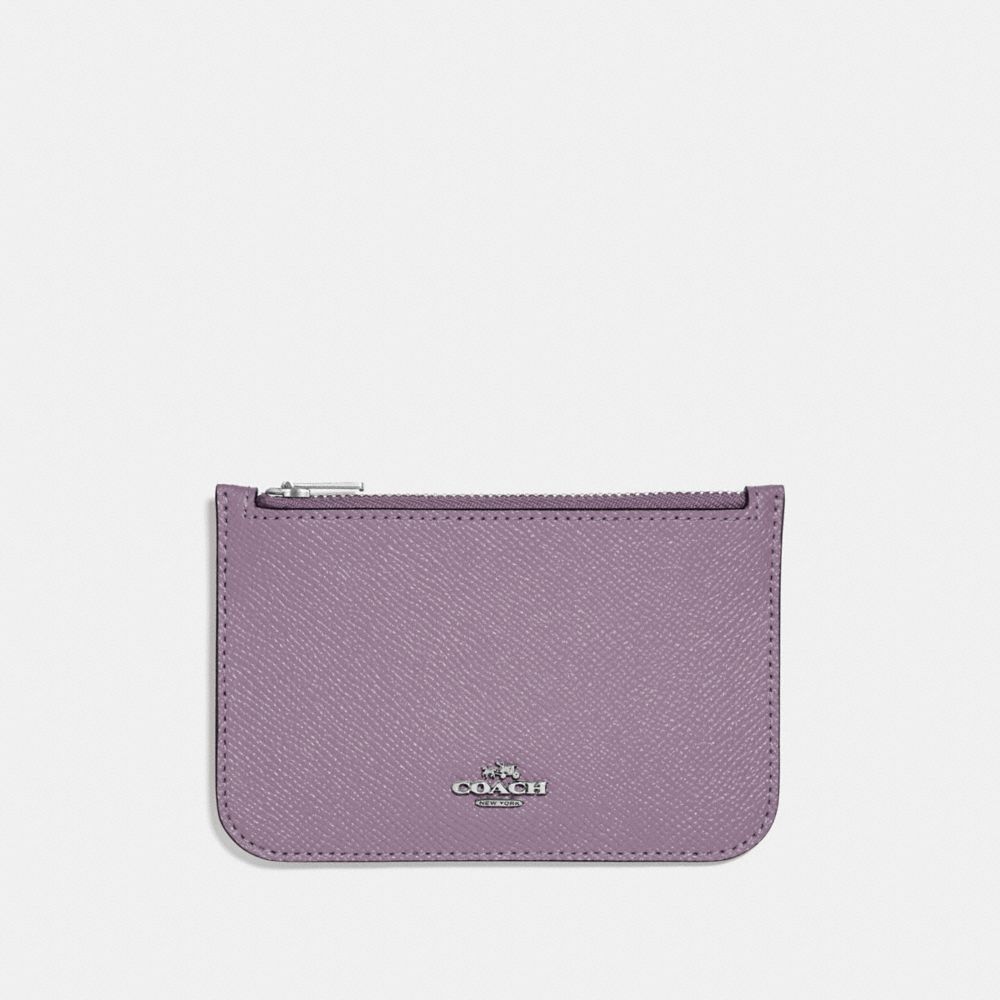 Crossgrain leather| Four credit card slots| Slip pocket| Zip pocket| 5" (L) x 3 1/4" (H)