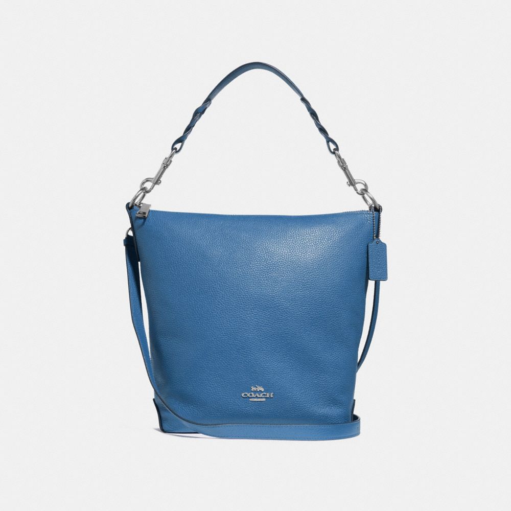 | Refined pebble leather| Inside snap pocket| Zip-top closure, fabric lining | Detachable handle with 12 3/4" drop| Outside zip pocket| Detachable strap with 19" drop for shoulder or crossbody wear| 12 1/4" (L) x 12 1/2" (H) x 3 3/4" (W)