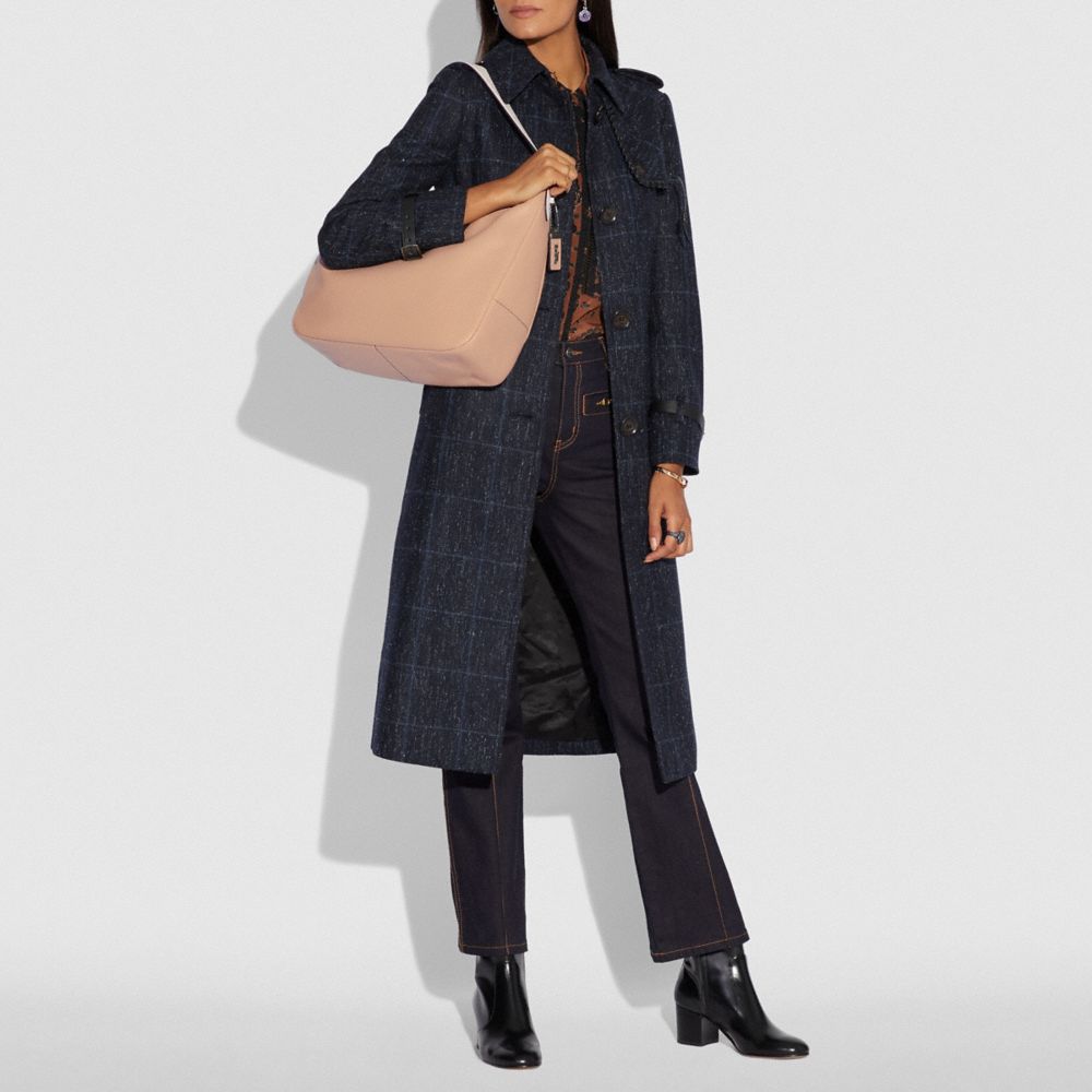 Glovetanned leather| Inside zip and snap pockets| Magnetic snap closure, leather lining| Adjustable strap with 2 1/4" drop for shoulder wear| 14 1/4" (L) x 11 1/2" (H) x 4 3/4" (W)