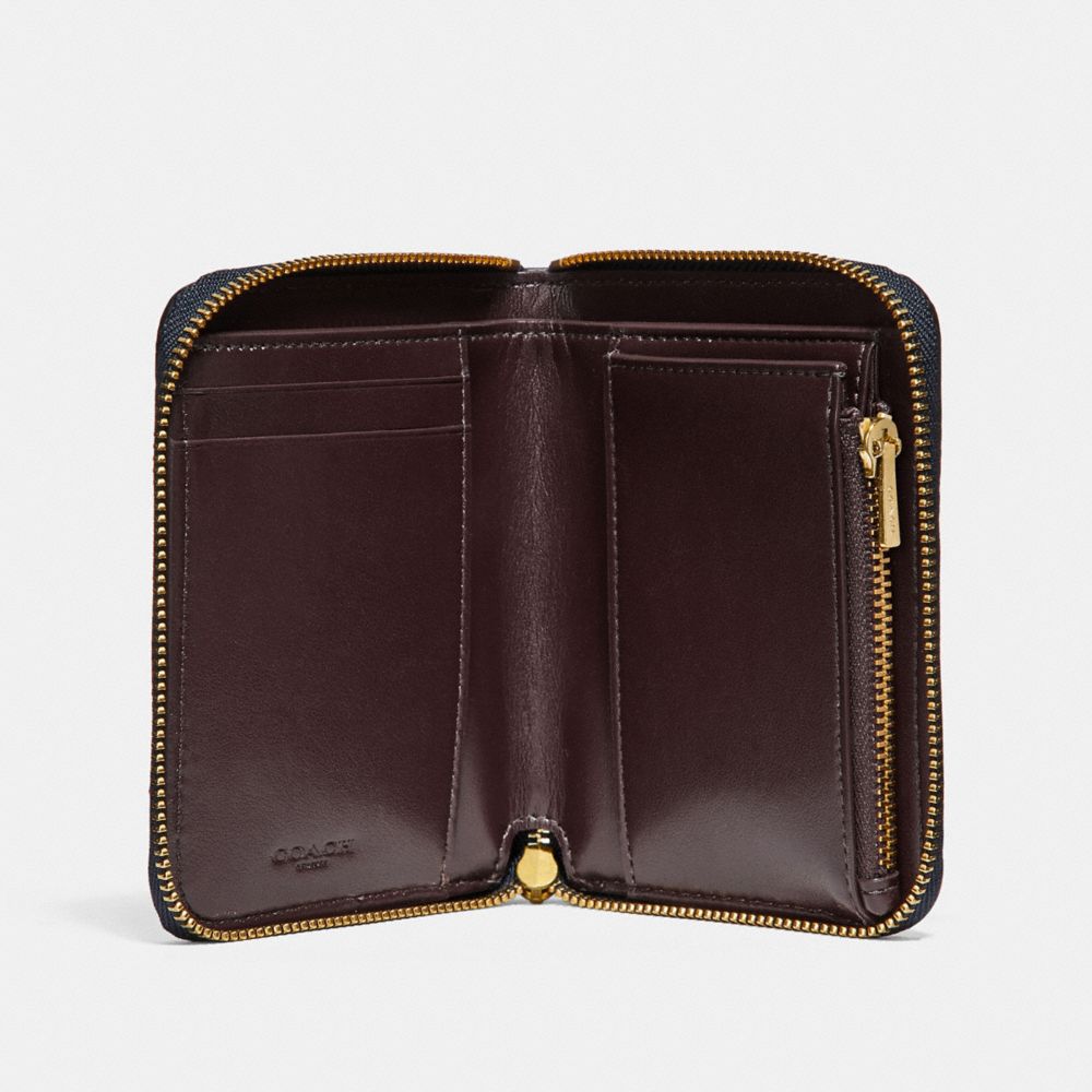 Polished pebble leather| Two credit card slots| Bill compartment| Inside zip coin pocket| Zip-around closure| 4 1/2" (L) x 3 3/4" (H) x 3/4" (W)
