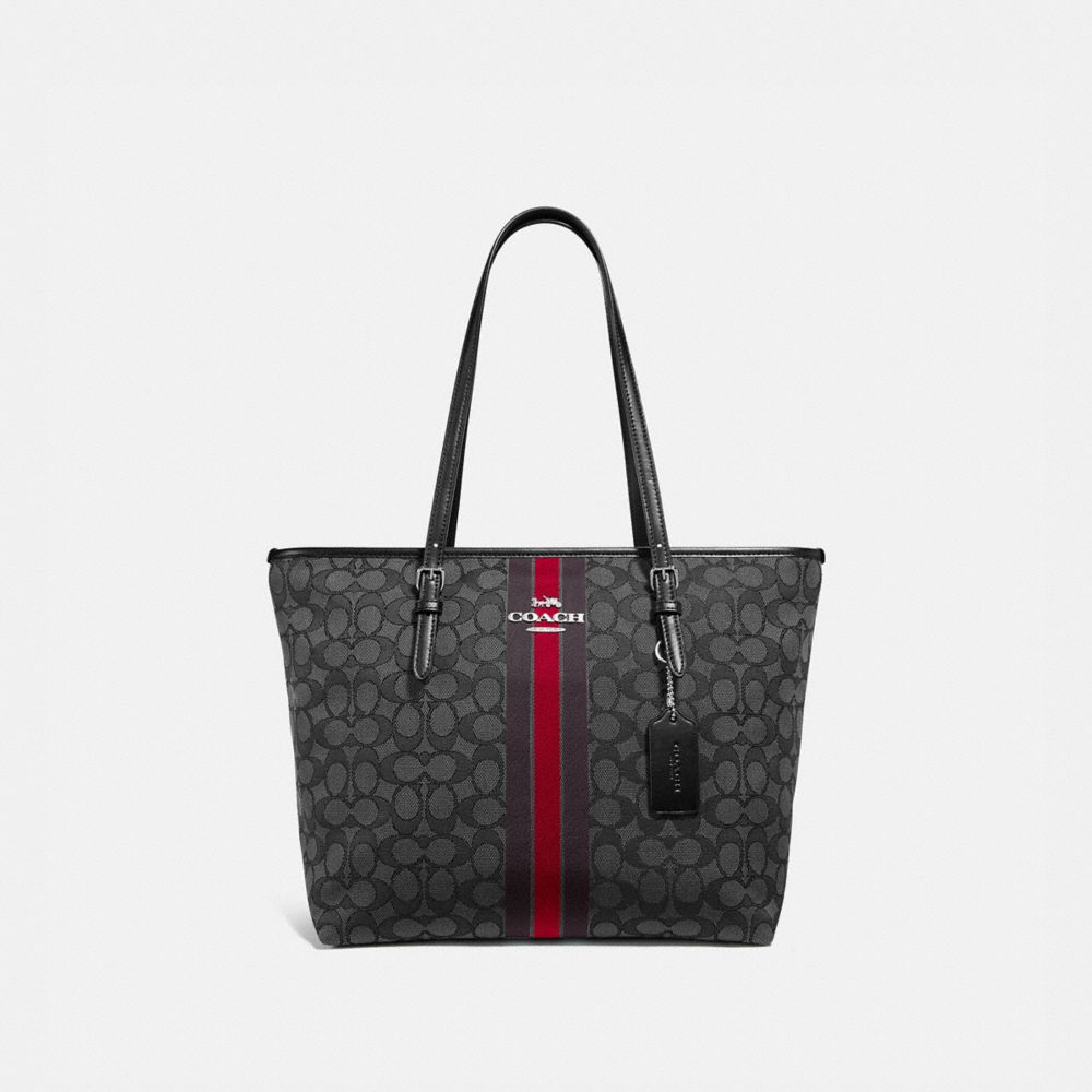 ZIP TOP TOTE IN SIGNATURE JACQUARD WITH STRIPE