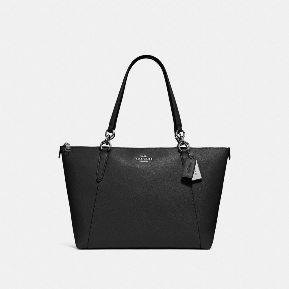 | Crossgrain leather| Inside zip, cell phone and multifunction pockets| Zip-top closure, fabric lining| Handles with 9" drop| Outside slip pocket| 12 1/2" (L) x 9 3/4" (H) x 5" (W)