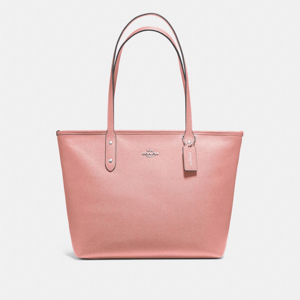 | Crossgrain leather and coated canvas| Inside zip, cell phone and multifunction pockets| Zip-top closure, fabric lining| Handles with 10" drop| 11 3/4" (L) x 10 1/2" (H) x 5 1/2" (W)