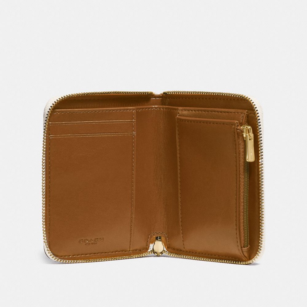 Signature smooth calf leather| Two credit card slots| Bill compartment| Zip coin pocket| Zip-around closure| Outside slip pocket| 4 1/2" (L) x 3 3/4" (H) x 3/4" (W)