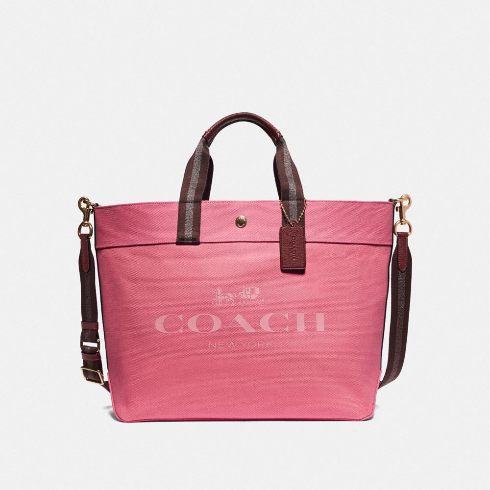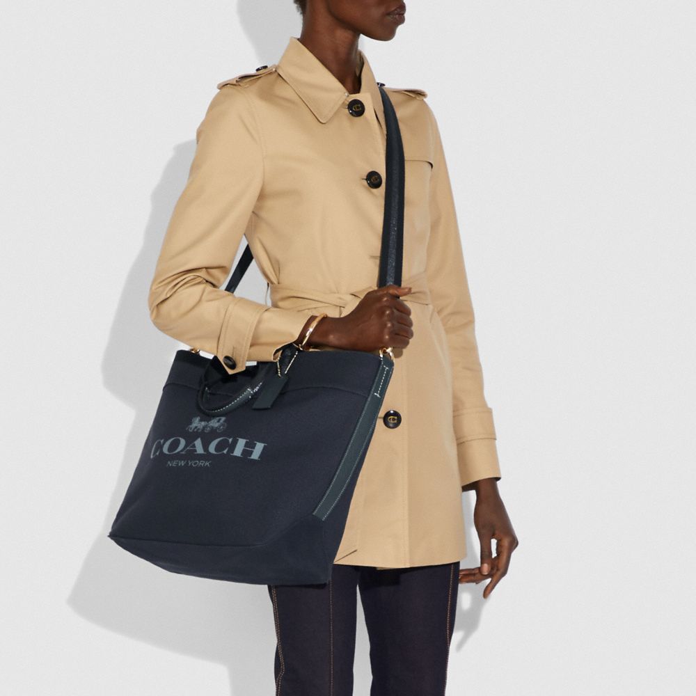 Canvas with refined pebble leather details| Inside zip, cell phone and multifunction pockets| Snap closure, fabric lining| Handles with 6" drop| Detachable strap with 21 3/4" drop for shoulder or crossbody wear| 14 1/2" (L) x 13 1/2" (H) x 6 1/2" (W)