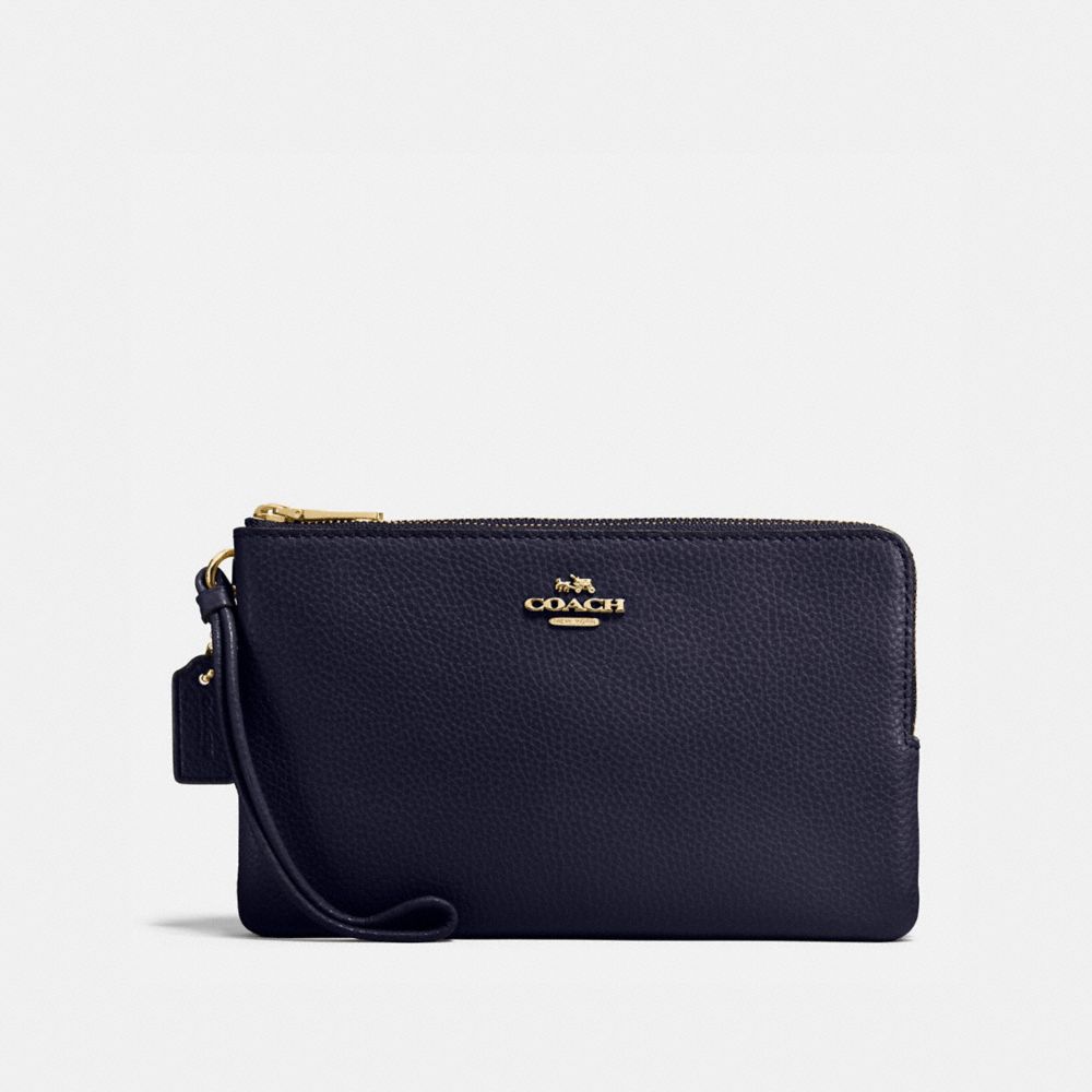 DOUBLE ZIP WALLET IN POLISHED PEBBLE LEATHER
