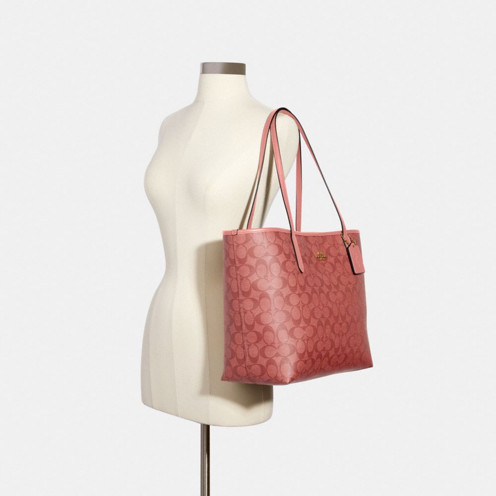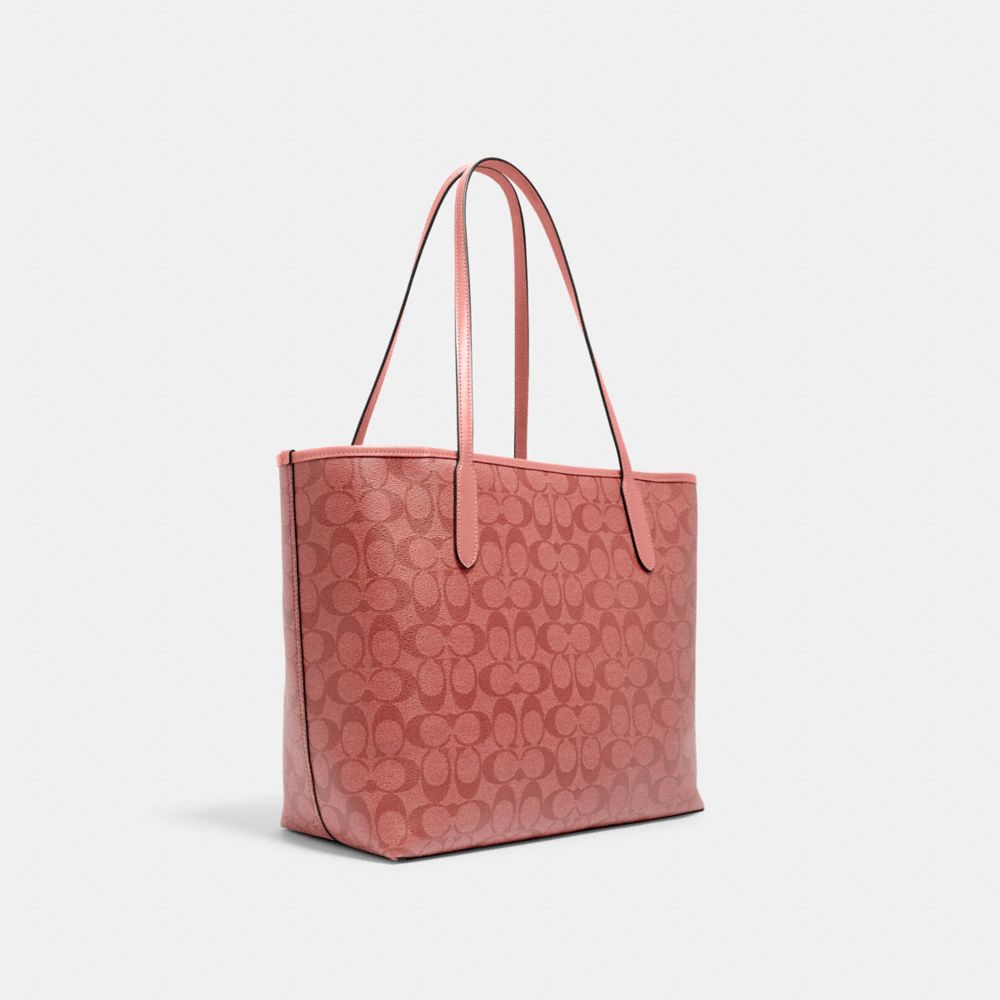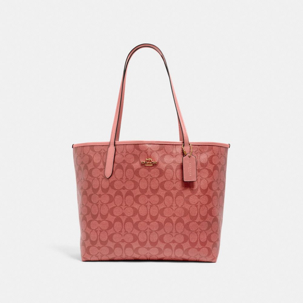 Signature coated canvas with smooth leather details| Inside zip pocket| Dogleash clip closure| Handles with 9 1/2" drop| 13" (L) x 11 1/2" (H) x 6 1/4" (W)