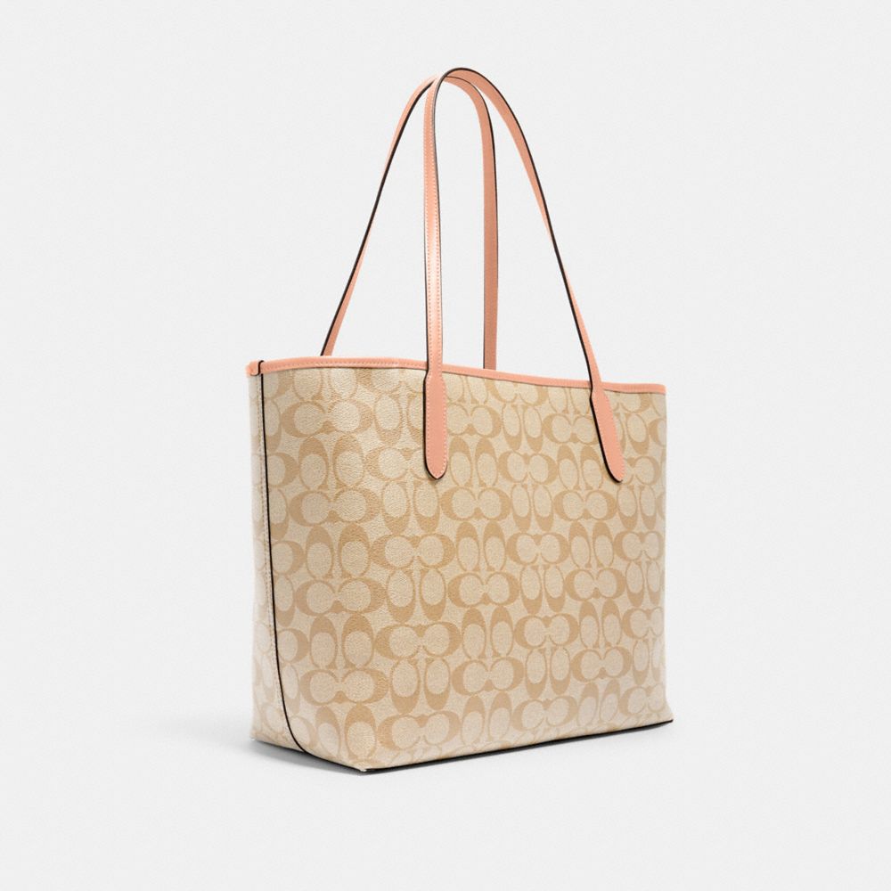 Signature coated canvas with smooth leather details| Inside zip pocket| Snap closure| Handles with 10" drop| 13" (L) x 11 1/2" (H) x 6 1/4" (W)Style No. 5696