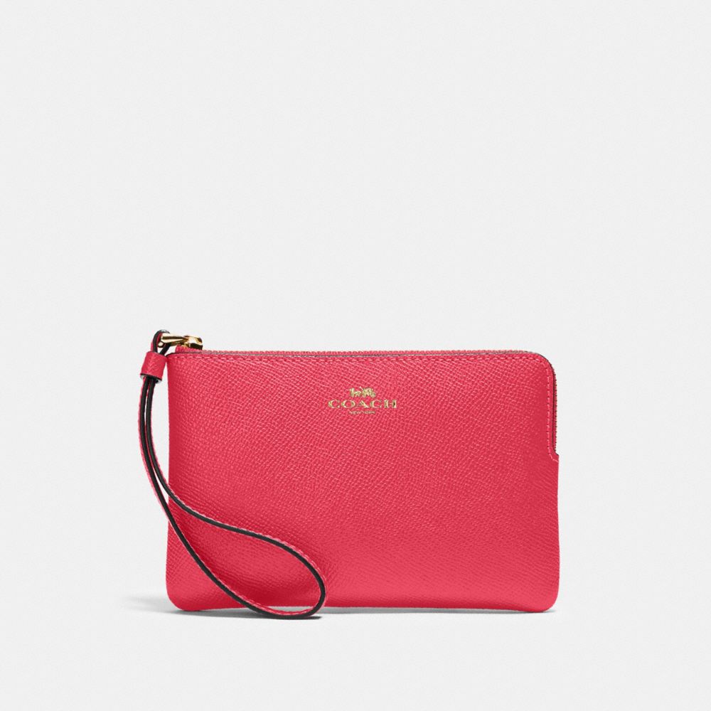 Crossgrain leather| Two credit card slots| Zip-top closure, fabric lining| Wrist strap attached| 6 1/4" (L) x 4" (H) x 1/2" (W)| Fits an iPhone or Android