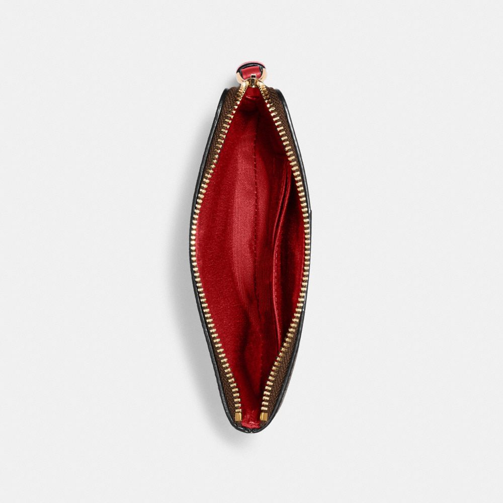 Signature coated canvas with crossgrain leather details| Two credit card slots| Zip-top closure, fabric lining| Wrist strap attached| 6 1/4" (L) x 4" (H) x 1/2" (W)| Fits an iPhone or Android