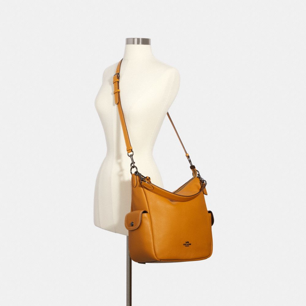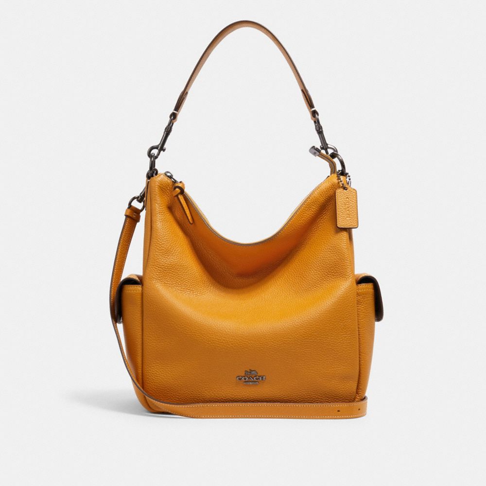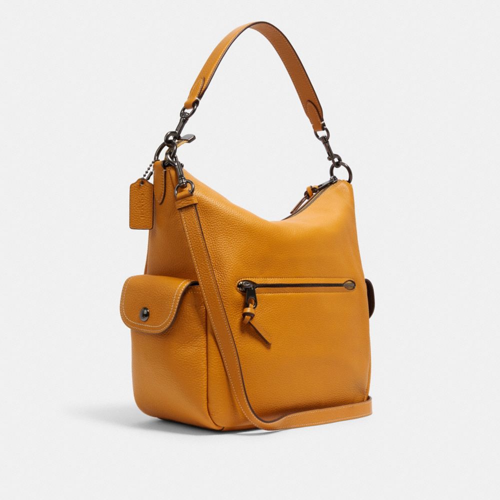 Refined pebble leather| Inside zip pocket| Zip-top closure, fabric lining| Detachable handle with 7" drop| Outside zip and snap pockets| Detachable strap with 20 3/4" drop for shoulder or crossbody wear| 10 3/4" (L) x 11 3/4" (H) x 5 1/4" (W)