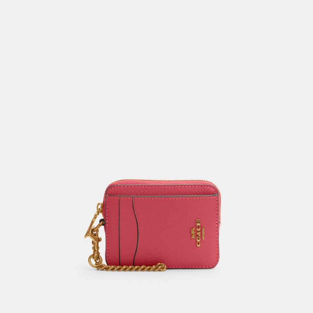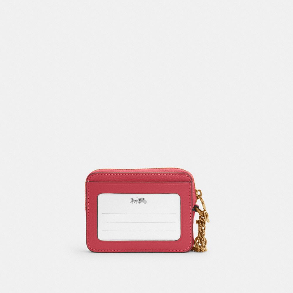 Refined pebble leather| Two credit card slots| ID window| Open pockets| Zip compartment| Chain wrist strap with dogleash clip attached| 3" (L) x 4 1/4" (H) x 3/4" (W)Style No. 6303