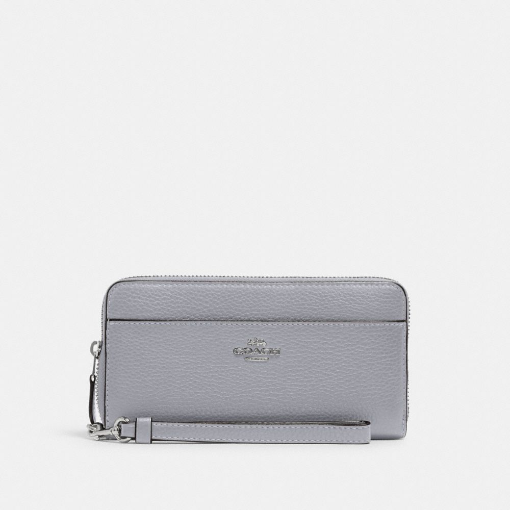 Refined pebble leather| 12 credit card slots| Full-length bill compartments| Zip coin pocket| Zip-around closure| Outside open pocket| Detachable wrist strap| 7 1/2" (L) x 4" (H) x 3/4" (W)