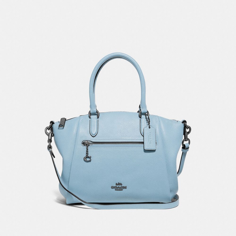 Polished pebble leather| Inside zip and snap pockets| Zip-top closure, fabric lining| Handles with 4 1/2" drop| Outside zip pocket| Detachable strap with 21 1/2" drop for shoulder or crossbody wear| Instantly change the look of your bag with an interchangeable strap.| 9 1/2" (L) x 8 1/4" (H) x 4 1/2" (W)| Also available in other sizes