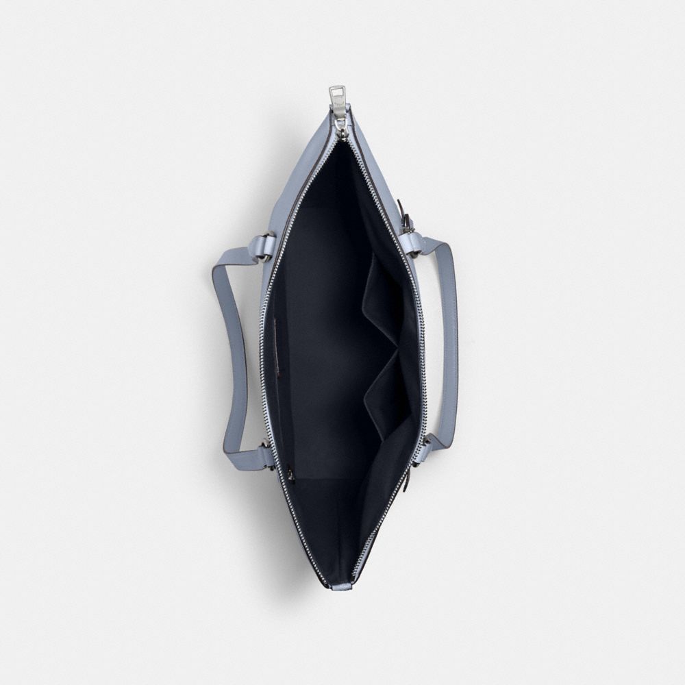 Crossgrain leather| Inside zip, cell phone and multifunction pockets| Zip-top closure, fabric lining| Handles with 10 1/4" drop| Outside zip pocket| 12 3/4" (L) x 10 1/2" (H) x 5 1/2" (W)