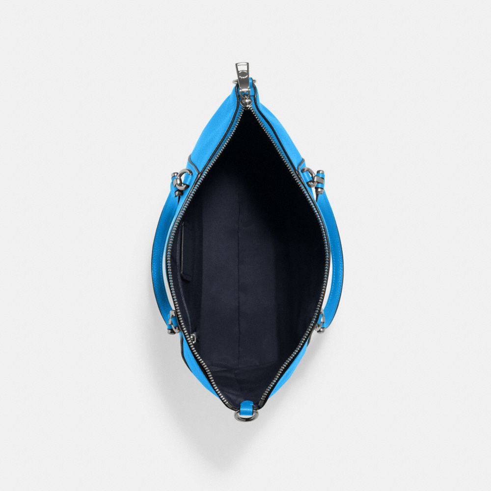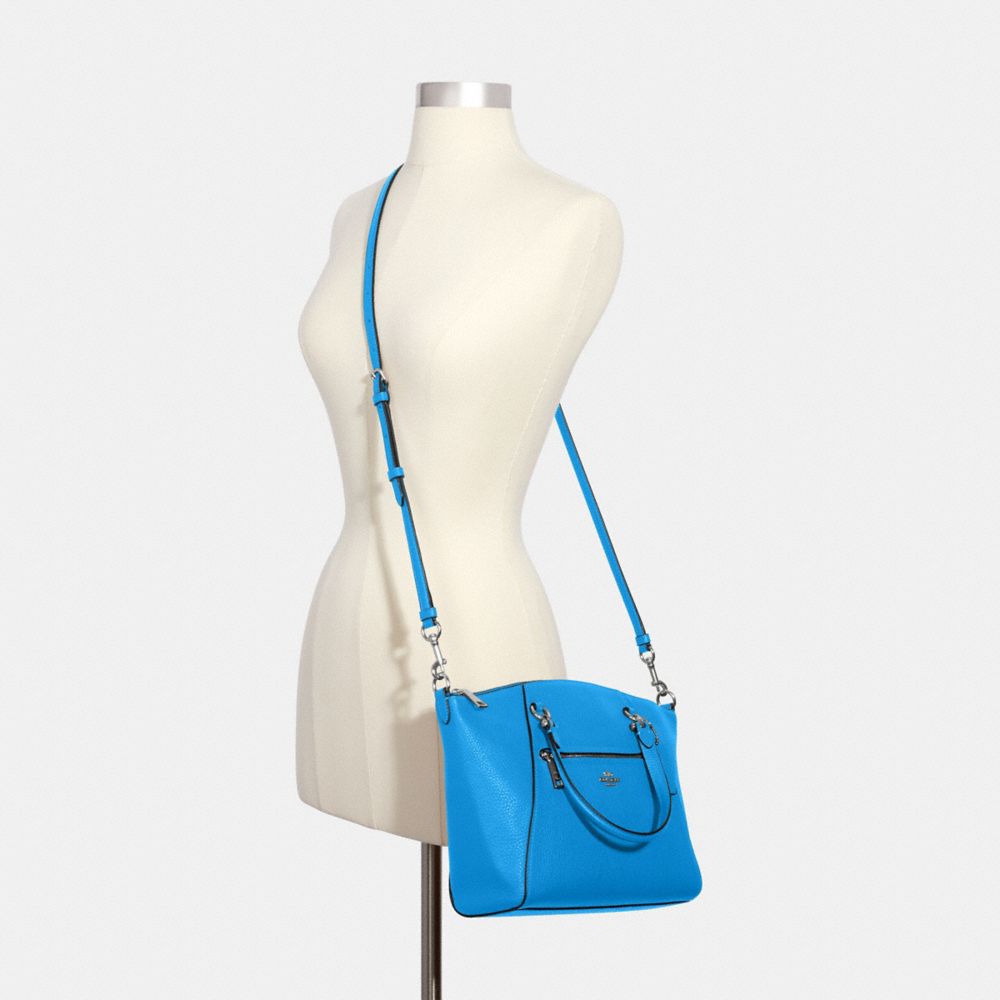 Refined pebble leather| Inside zip pocket| Zip-top closure, fabric lining| Handles with 5" drop| Outside zip pocket| Detachable strap with 21" drop for shoulder or crossbody wear| 10 1/2" (L) x 8 3/4" (H) x 3 3/4" (W)