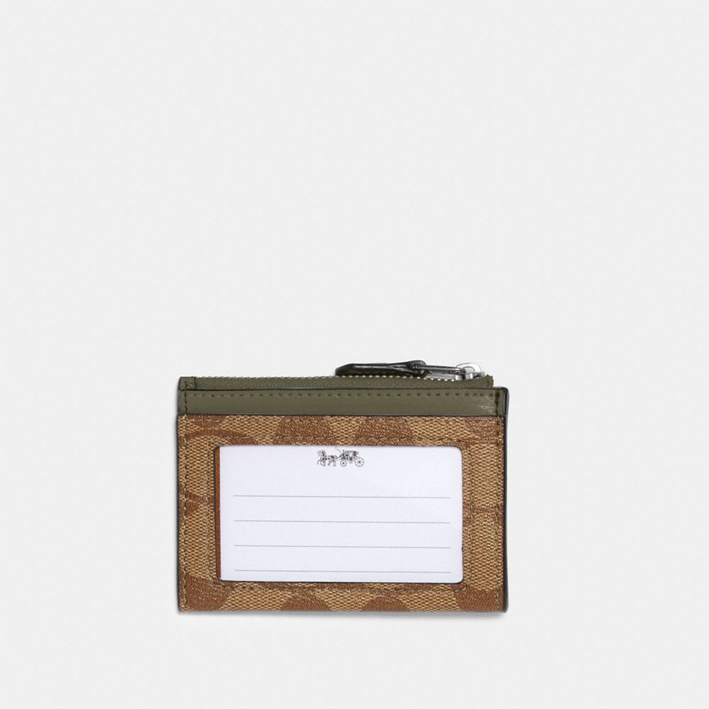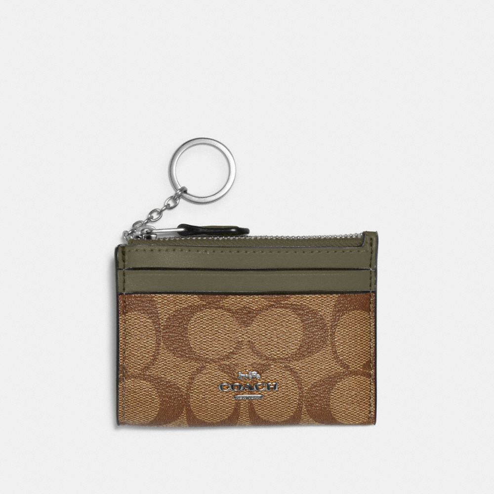 Signature coated canvas and smooth leather| Two credit card slots| ID window| Zip-top closure, fabric lining| Attached split key ring| 4 1/4" (L) x 3" (H) x 1/2" (W)