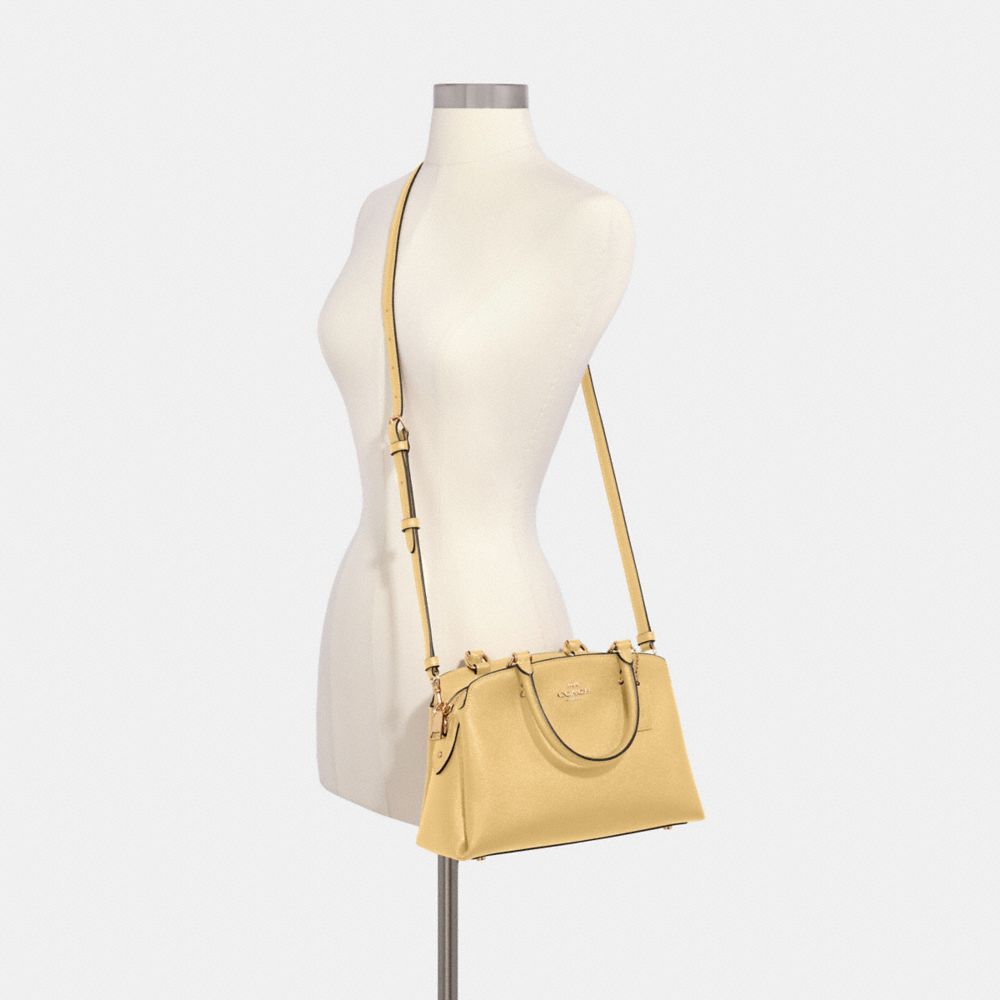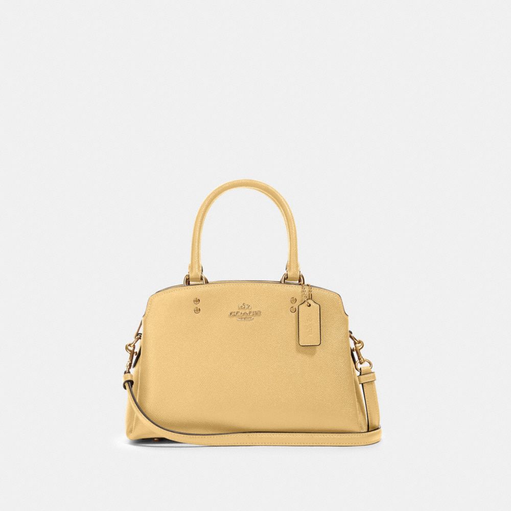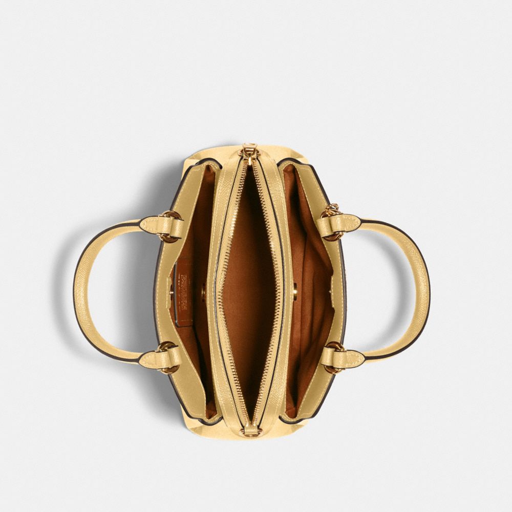 Crossgrain leather| Center zip compartment| Snap closure, fabric lining| Handles with 4 1/4" drop| Outside open pocket| Detachable strap with 21 1/2" drop for shoulder or crossbody wear| 10 1/4" (L) x 6 3/4" (H) x 4 1/4" (W)