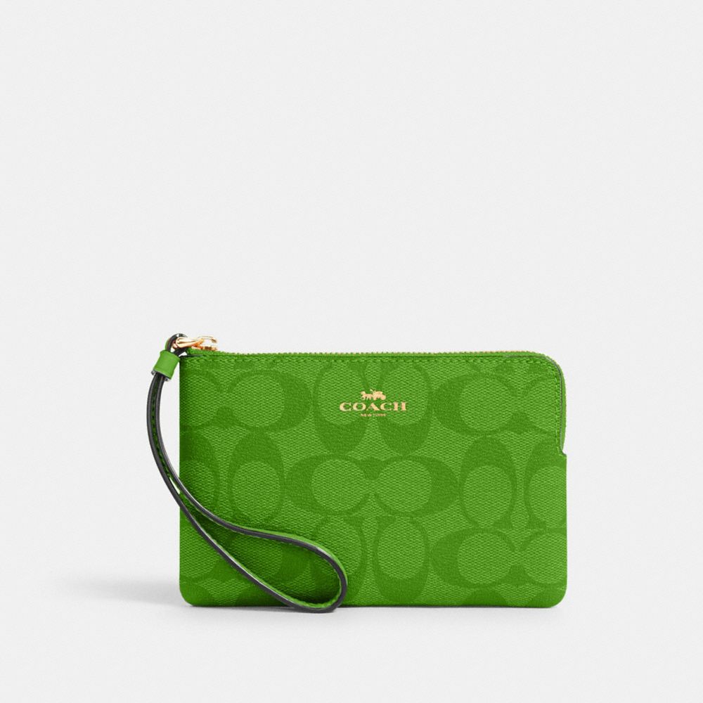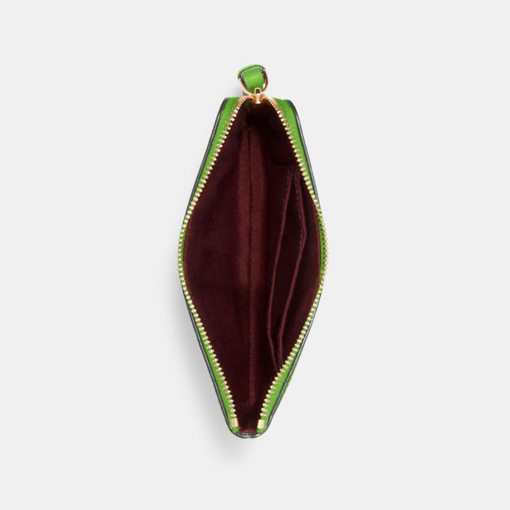 Signature coated canvas and smooth leather| Two credit card slots| Zip-top closure, fabric lining| Wrist strap attached| 6 1/4" (L) x 4" (H) x 1/2" (W)Style No. 91178