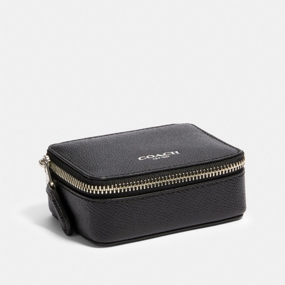 Crossgrain leather| Zip-around closure| 3 1/2" (L) x 2 1/2" (H) x 1 1/2" (W)| Includes three pill bottles