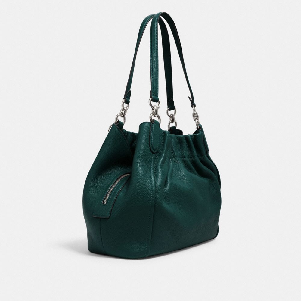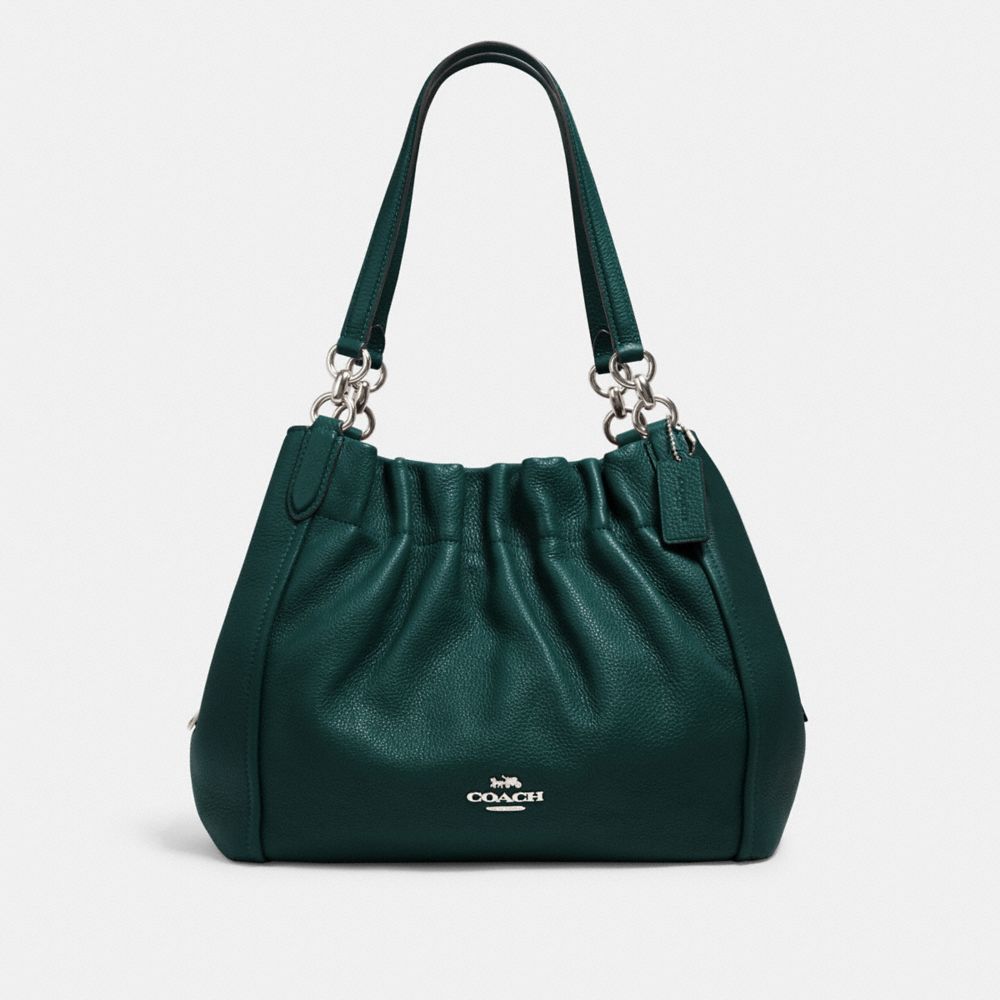 Refined pebble leather| Inside zip, cell phone and multifunction pockets| Center zip compartment| Snap closure, fabric lining| Handles with 10 1/4" drop| 12 1/4" (L) x 9 3/4" (H) x 5 1/4" (W)